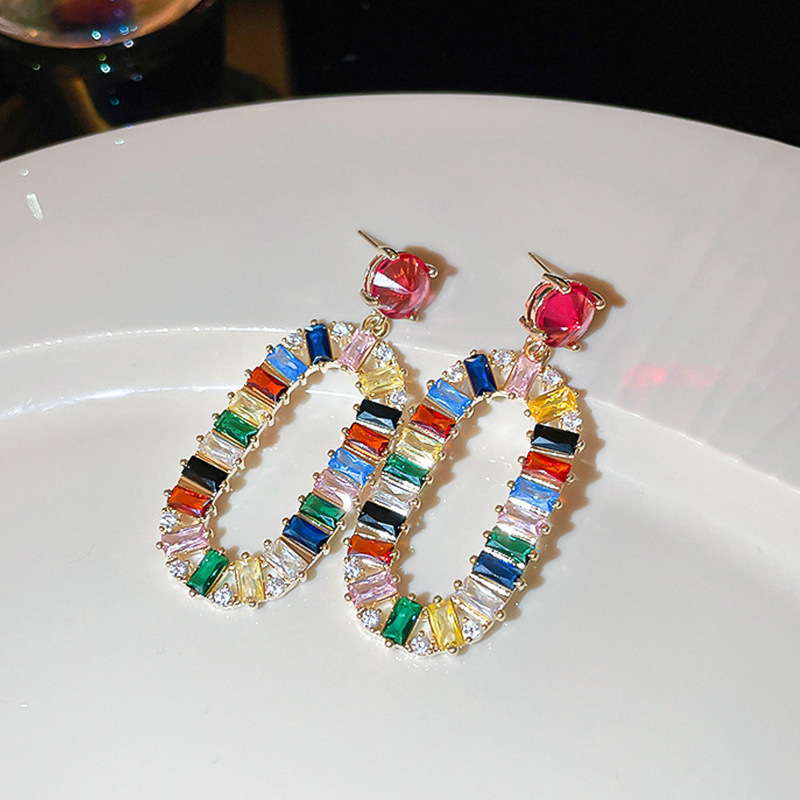 New Korean color zircon earrings flower oval earrings fashionable creative earrings forest sense earrings