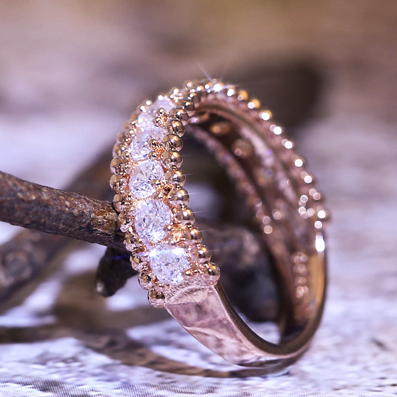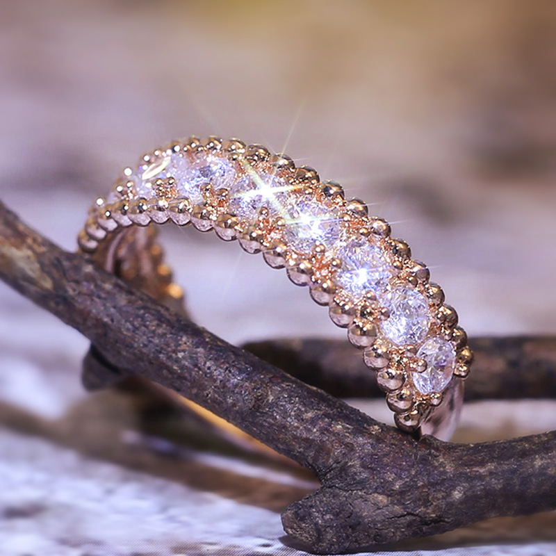 New Korean style micro-inlaid zircon simple engagement ring for women, rose gold plated ring wholesale
