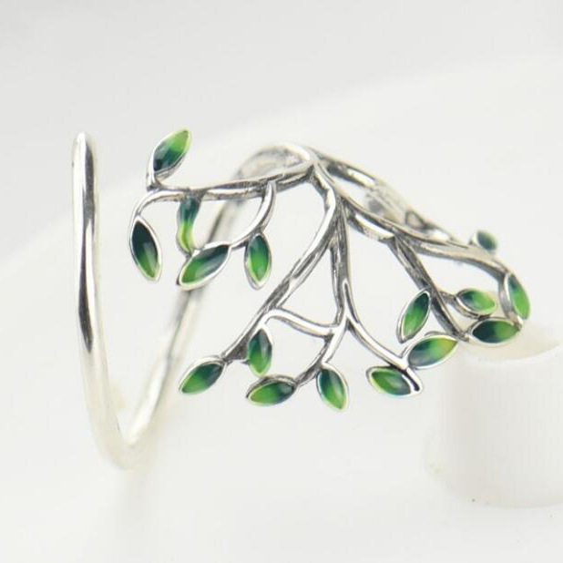 New Korean style small fresh hand-dripping glaze green leaf branch ring fashionable open single ring adjustable