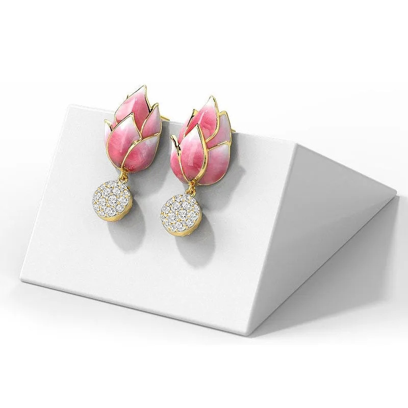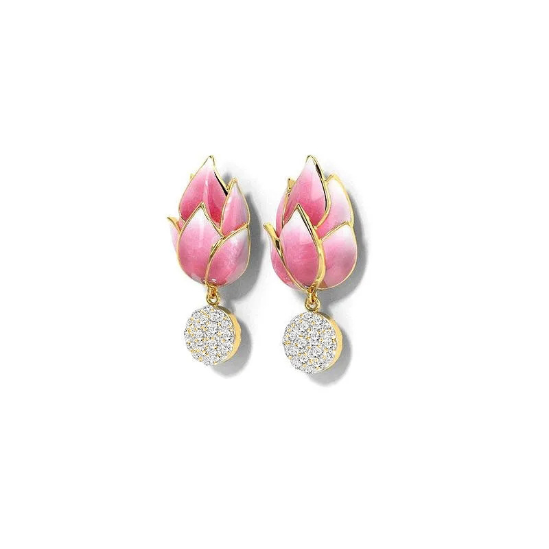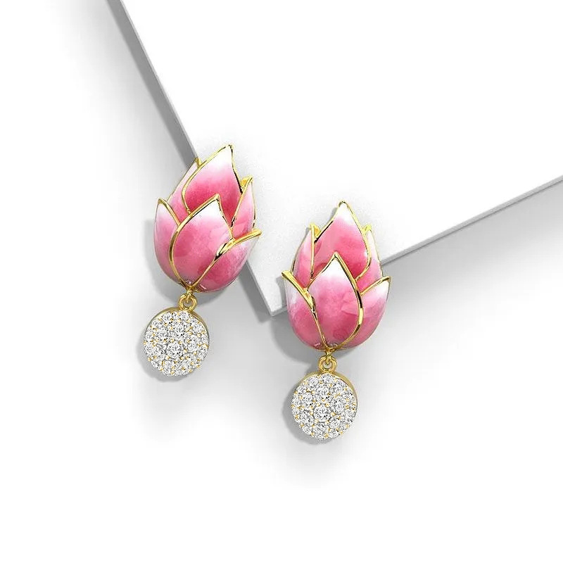 New lotus earrings for women, oil painting, gradient design, small fresh forest style, pastoral style jewelry