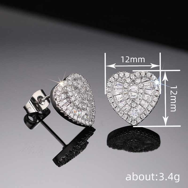 New love jewelry for women micro-inlaid zircon exquisite earrings heart-shaped ladies popular earrings