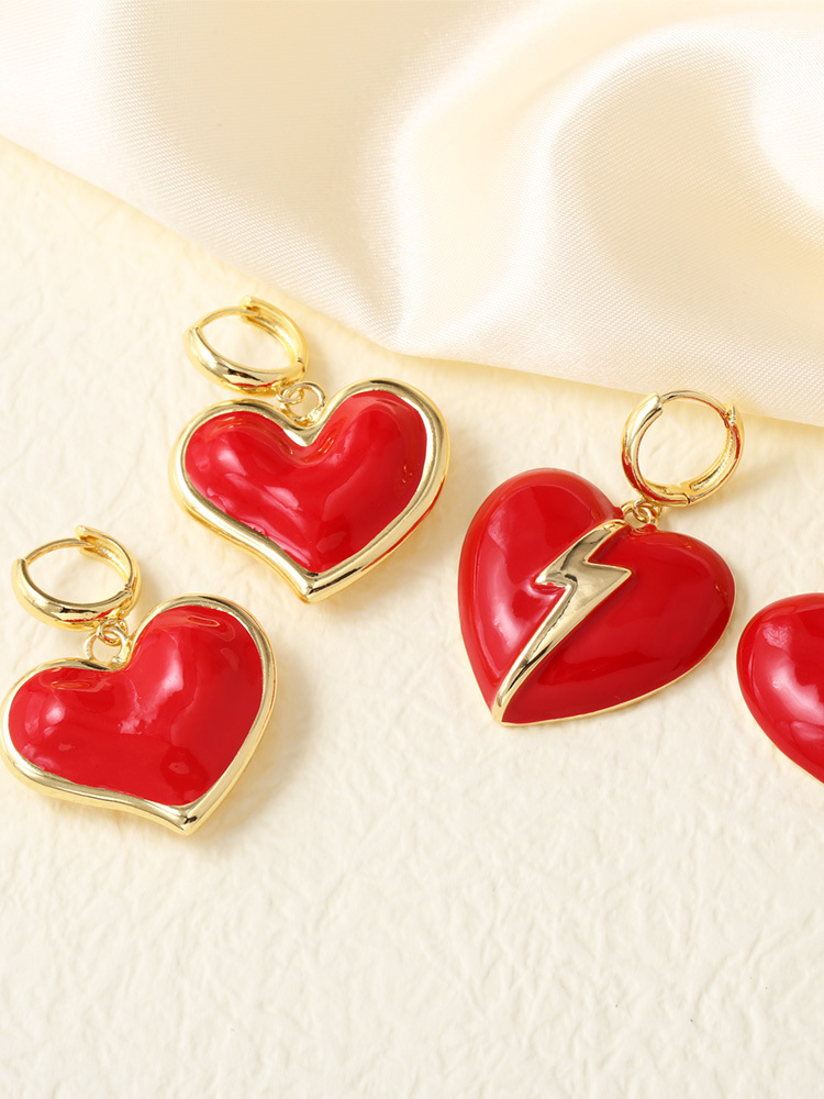 New love lightning earrings red heart lightning earrings copper electroplating simple earrings wholesale erz50
