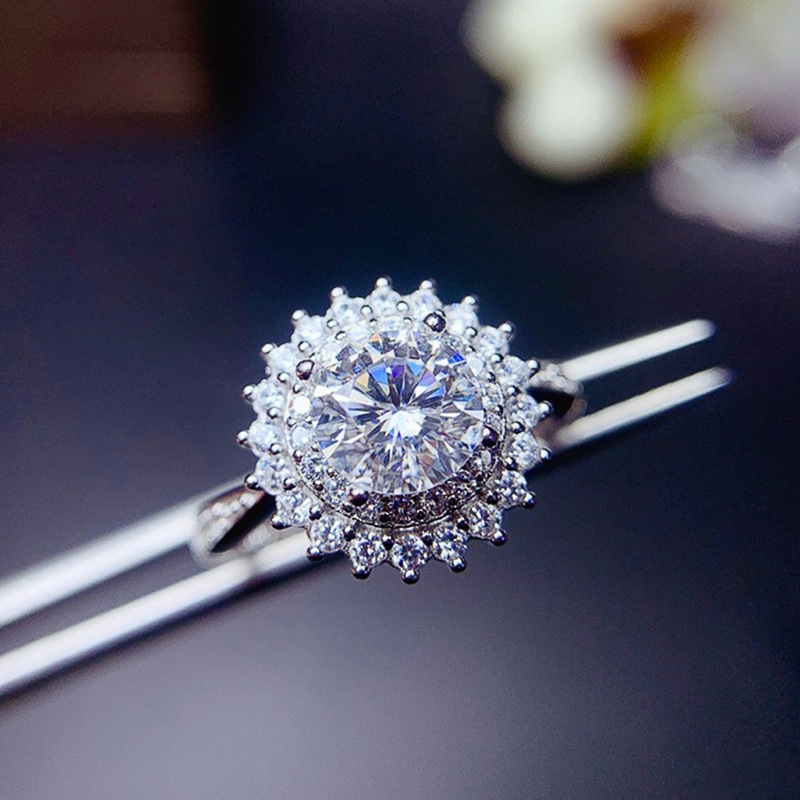 Micro-inlaid celebrity style classic all-match popular ring six-claw zircon wedding ring European and American style light luxury ring