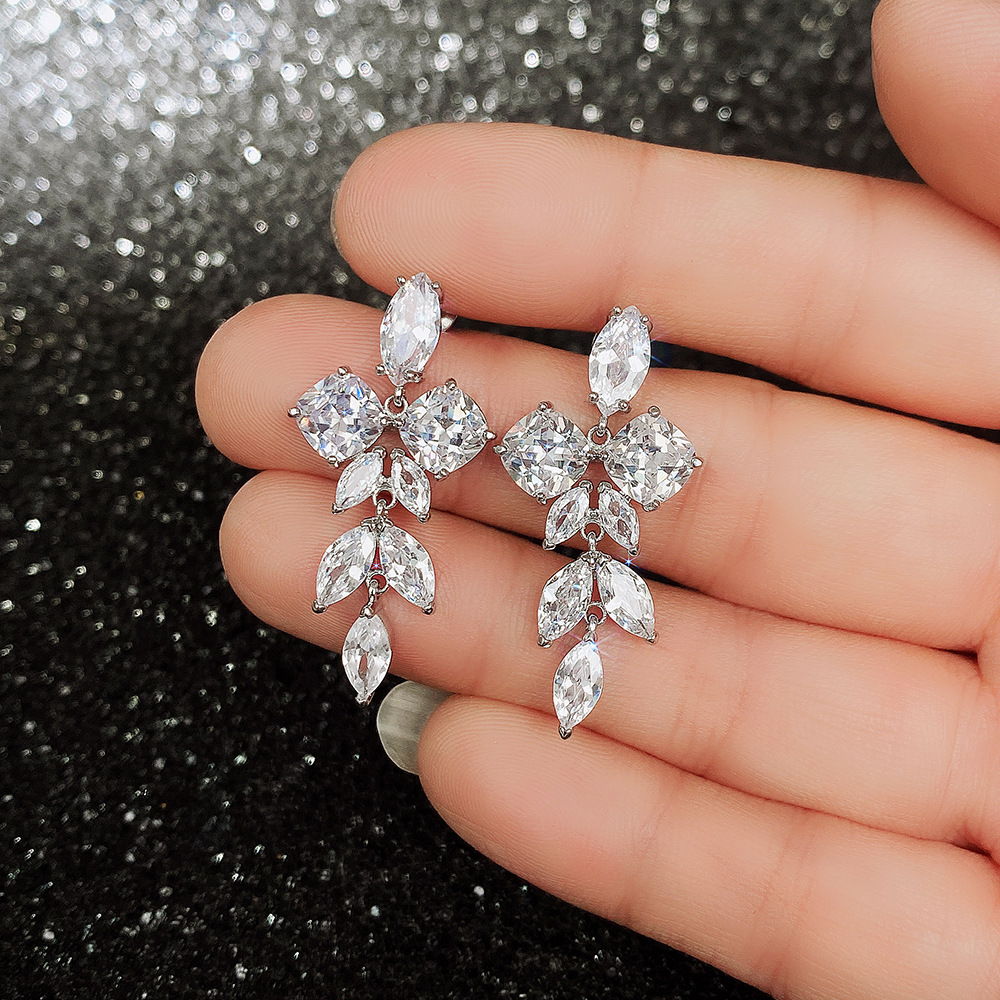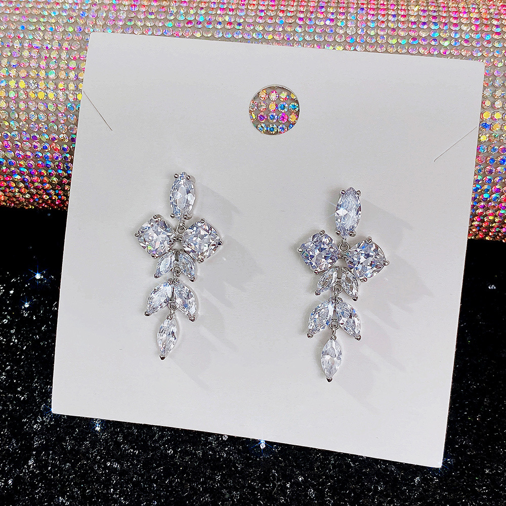 New luxury exquisite olive branch flower zircon earrings female sweet bridal jewelry