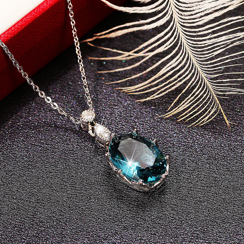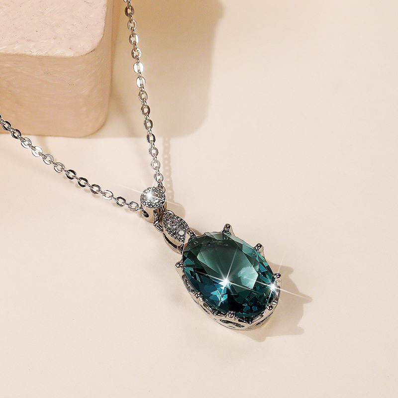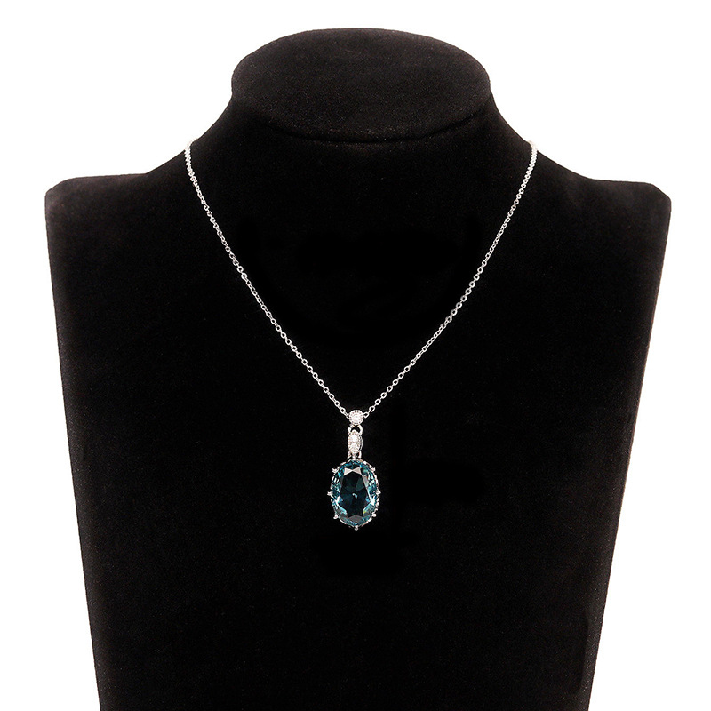 New luxury light blue simulation necklace oval zircon necklace fashion pendant women's clavicle chain