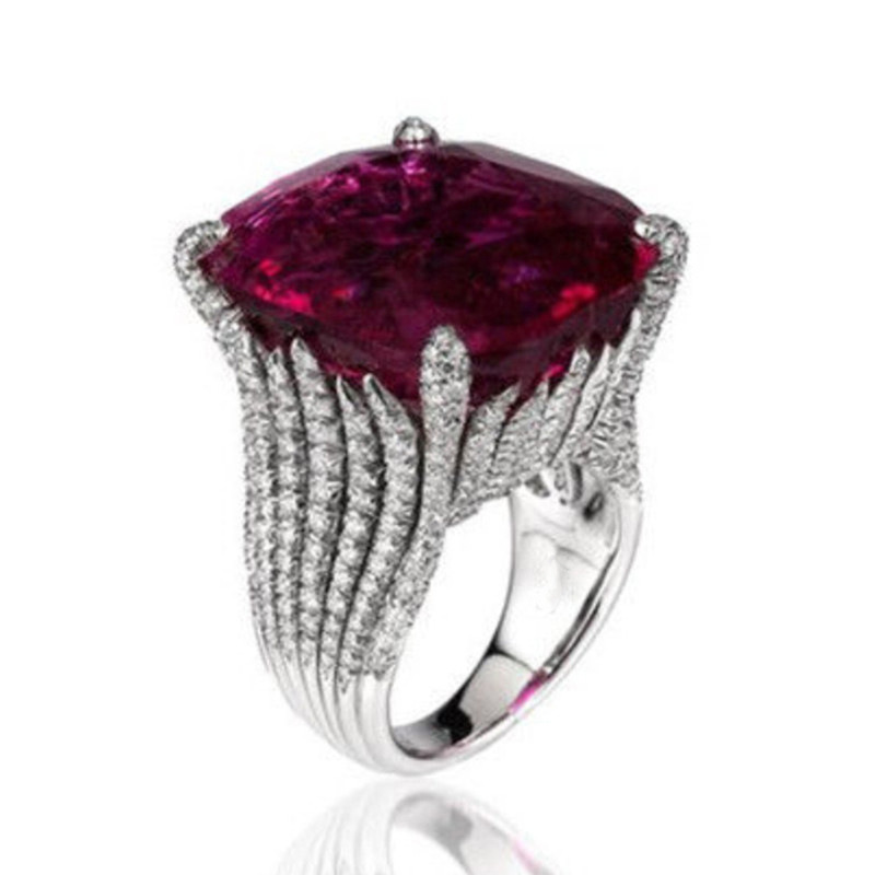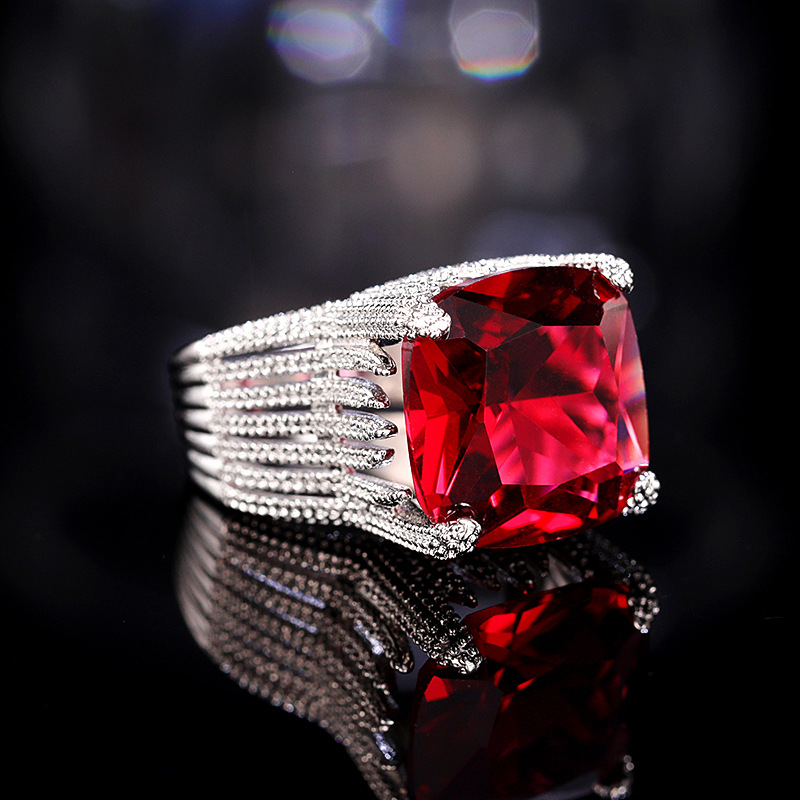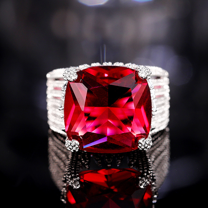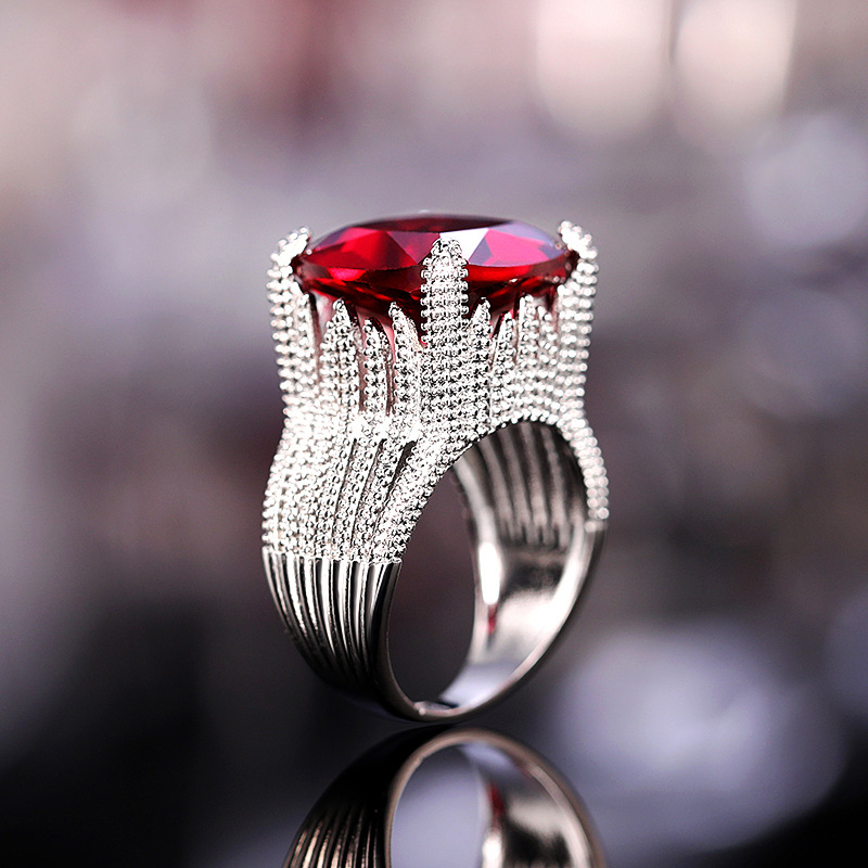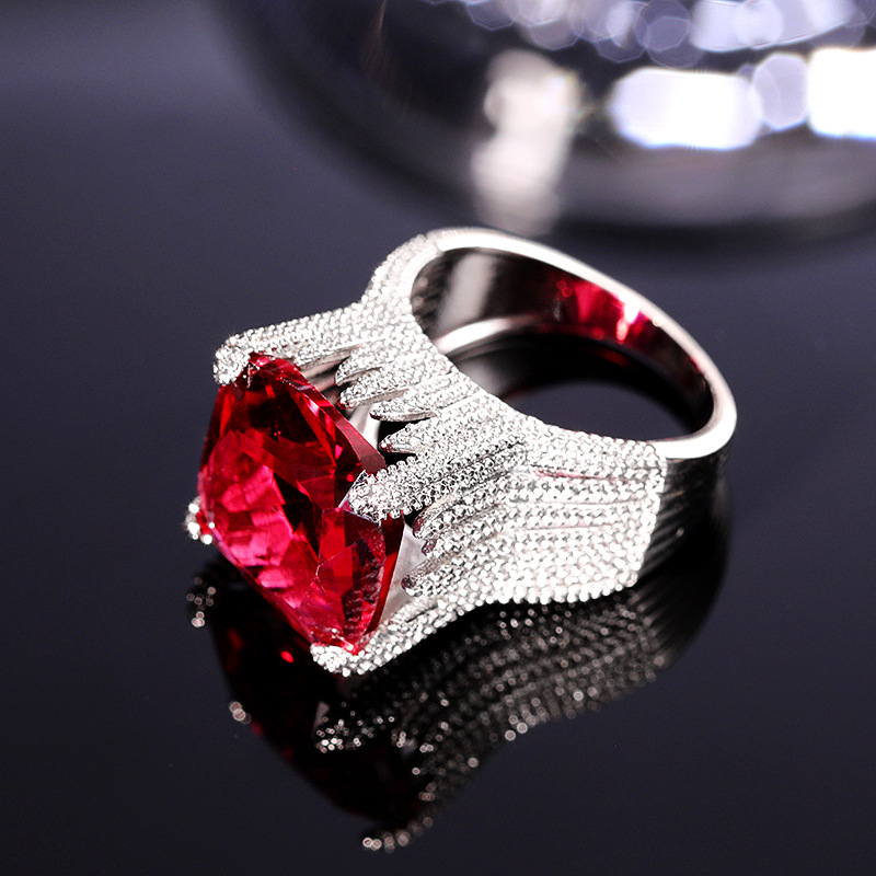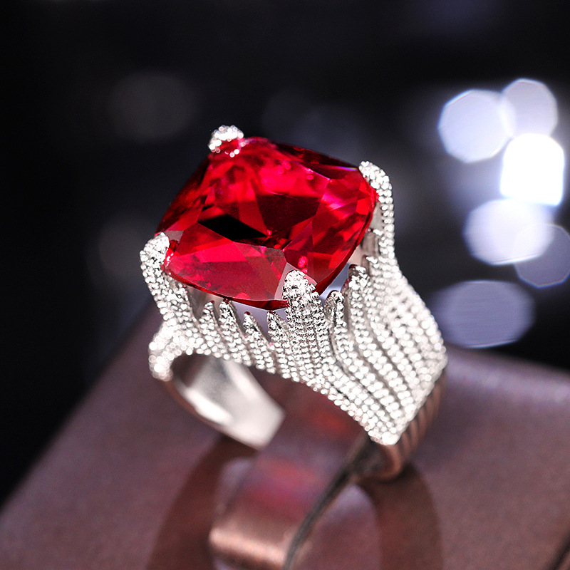 New luxury red women's ring geometric domineering ring ladies temperament generous European and American hot jewelry