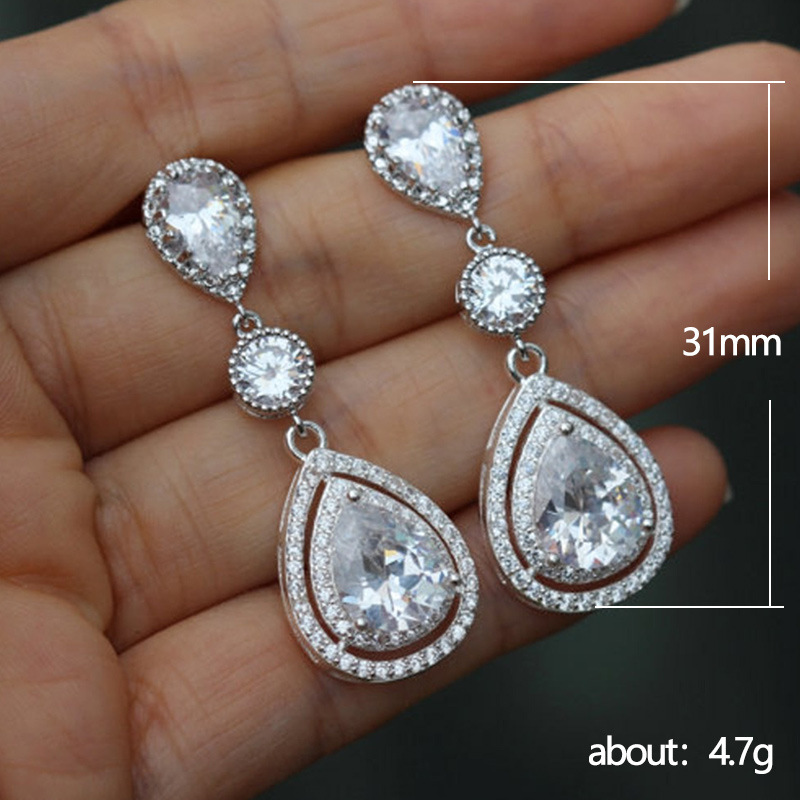 New luxury water drop micro inlaid AAA zircon earrings classic evening wedding bridal jewelry