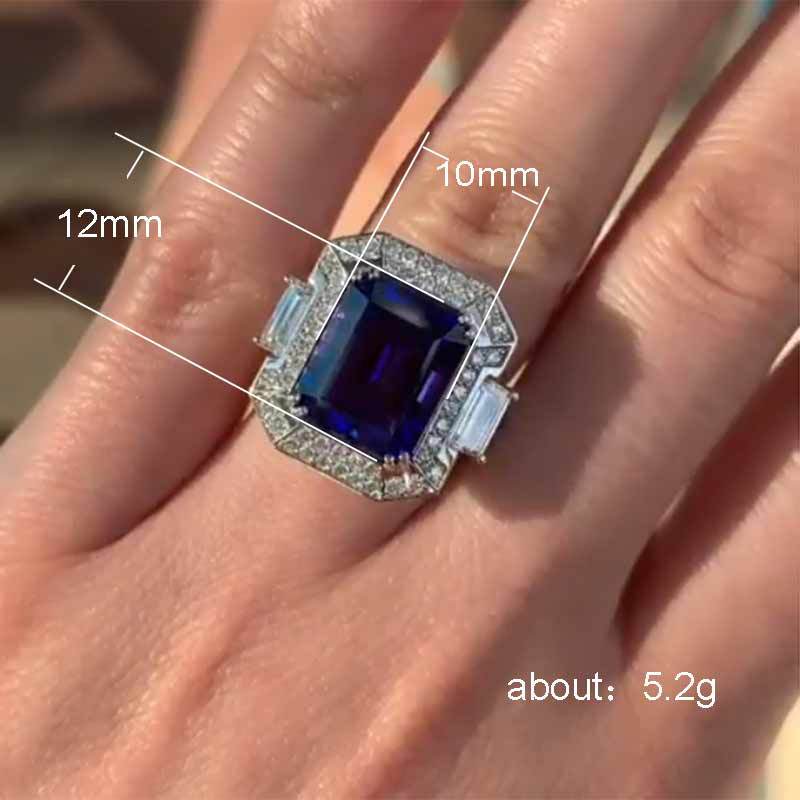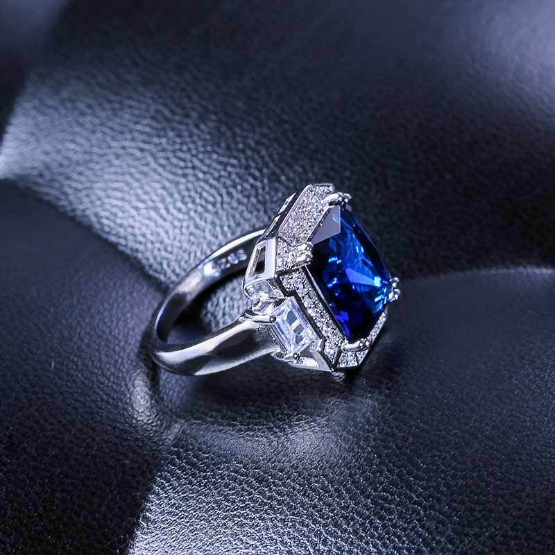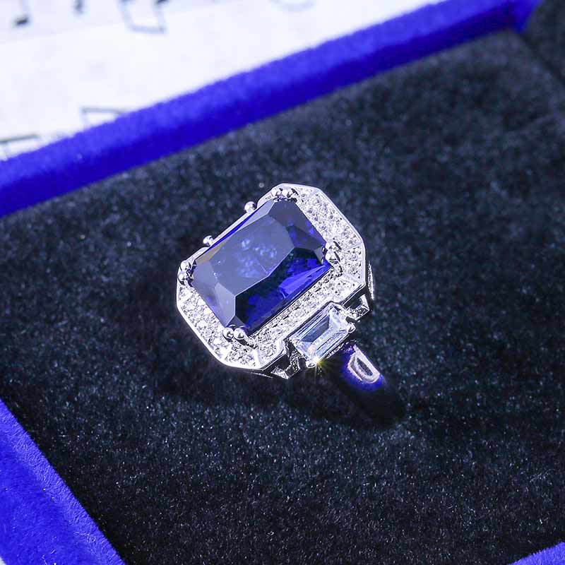 New luxury wedding ring European and American blue gemstone creative engagement ring e-commerce popular hand jewelry