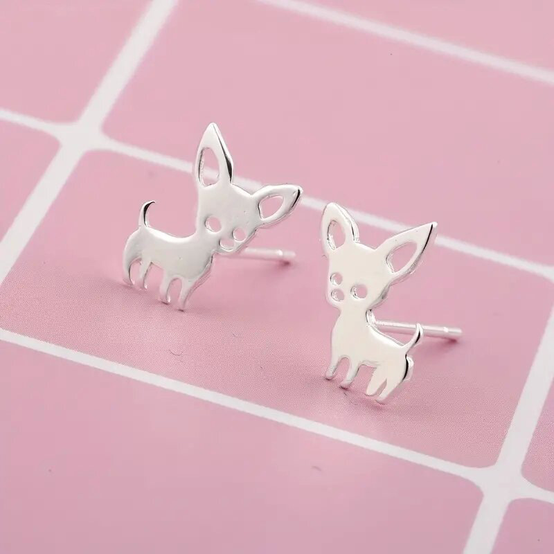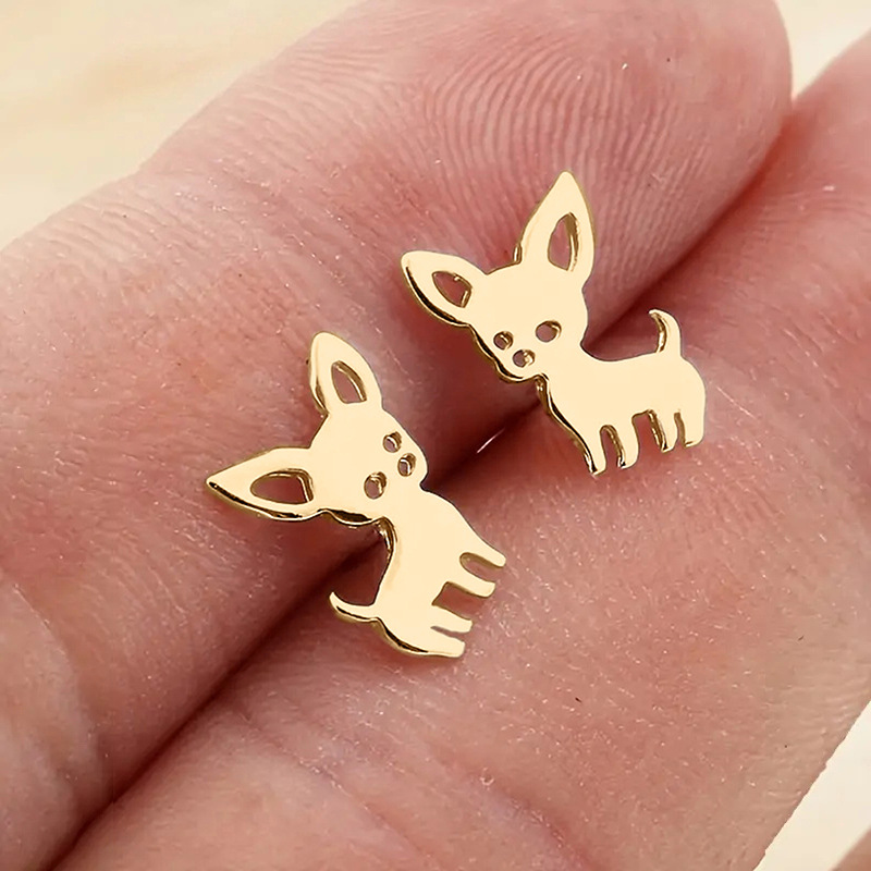 New metallic earrings small animal fox earrings European and American simple cute puppy earrings