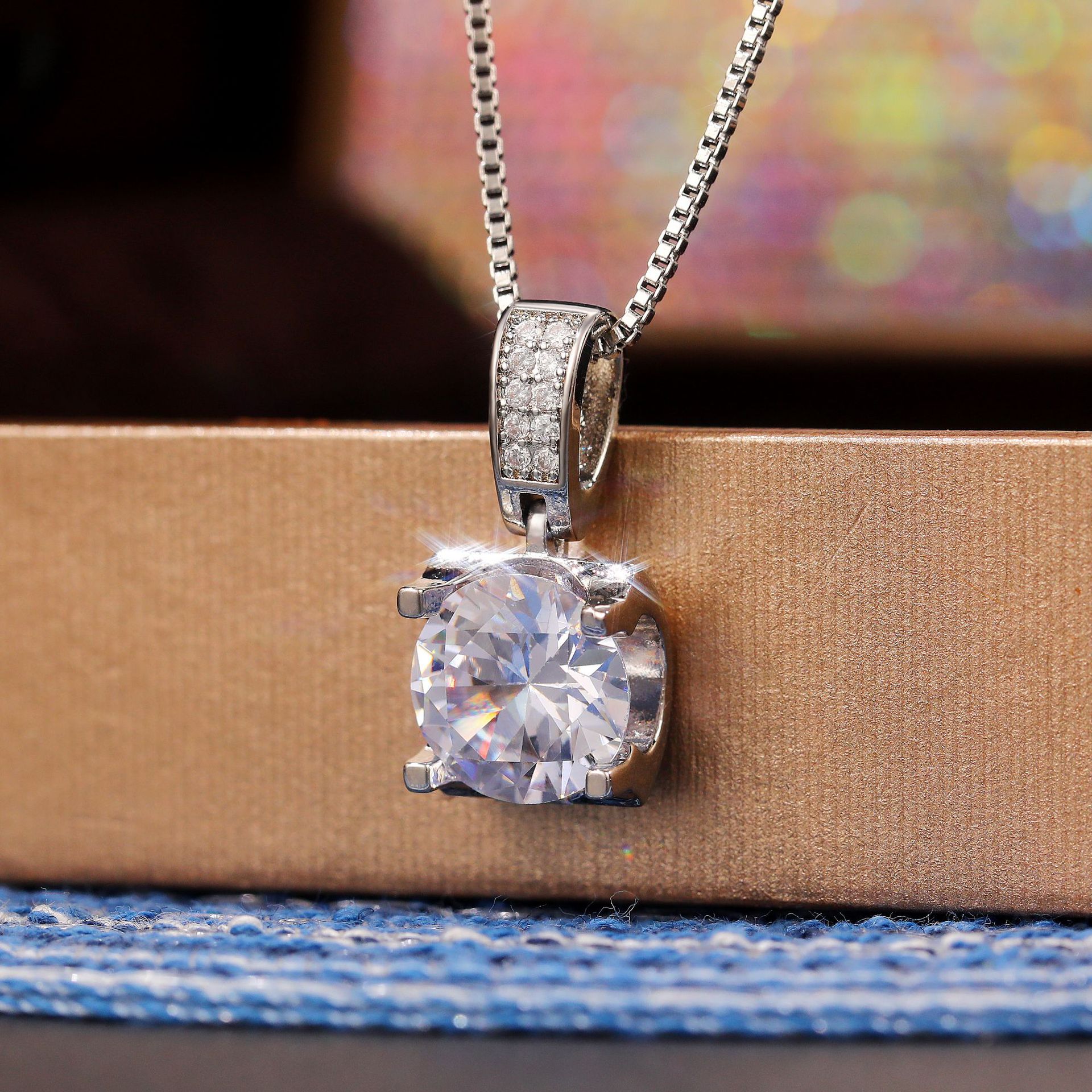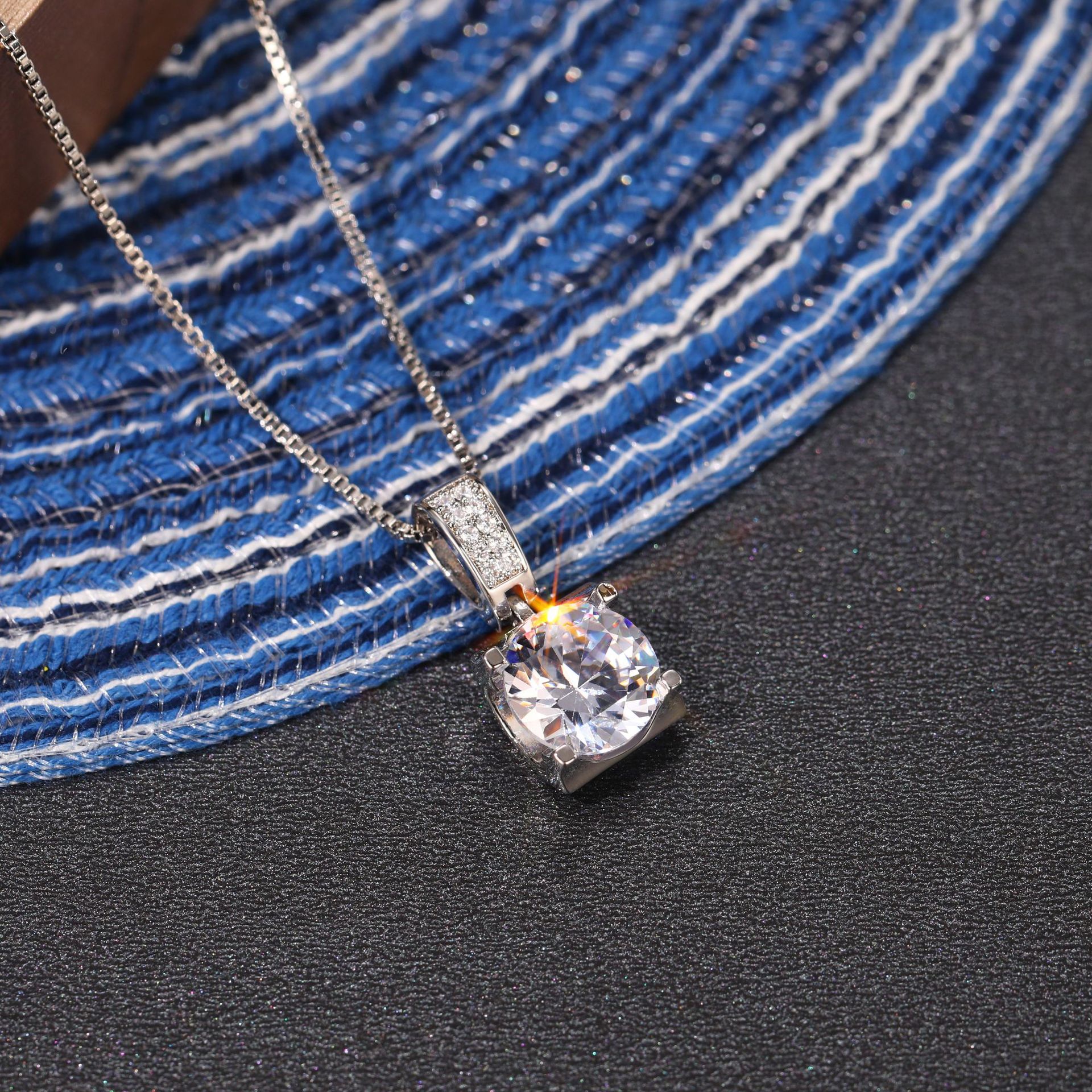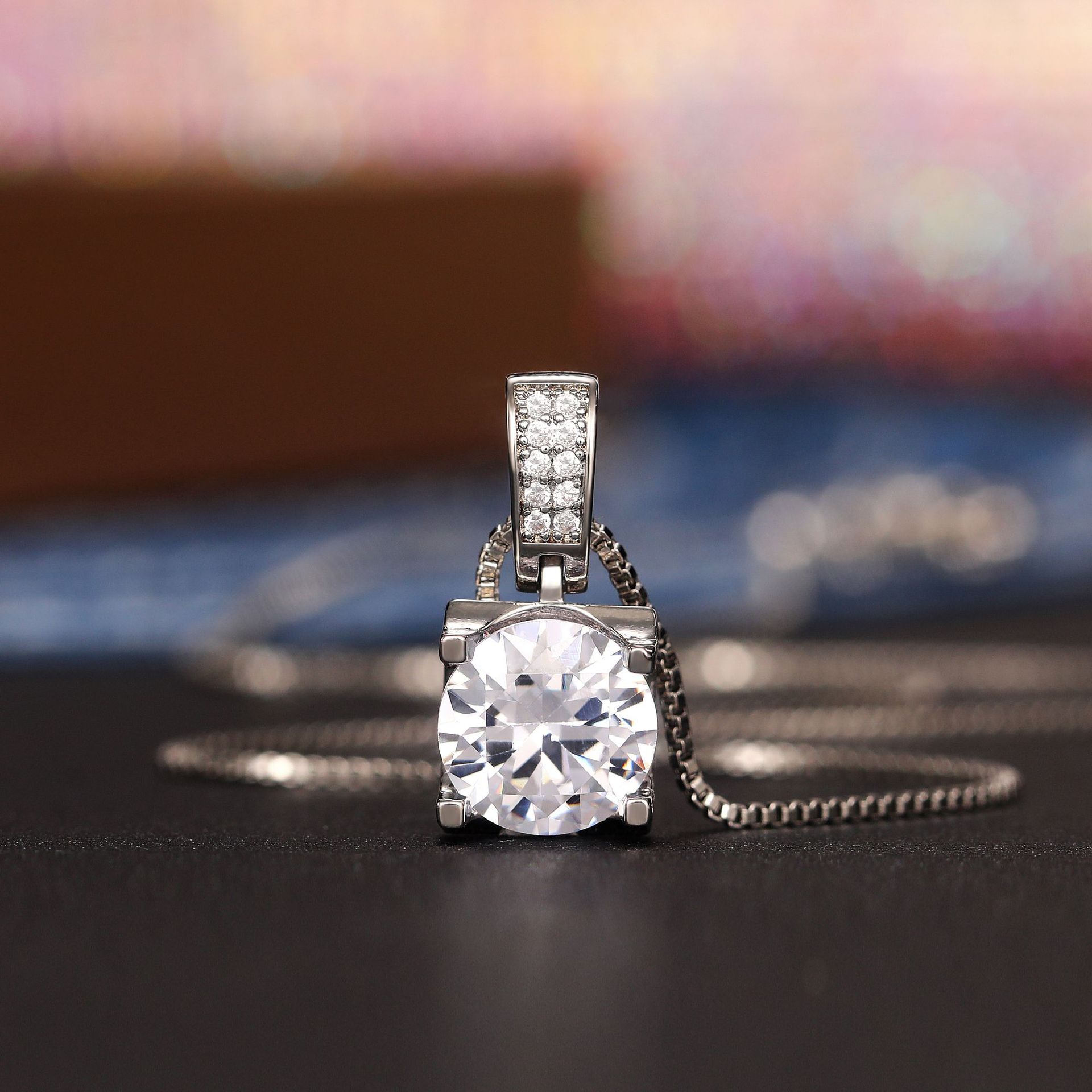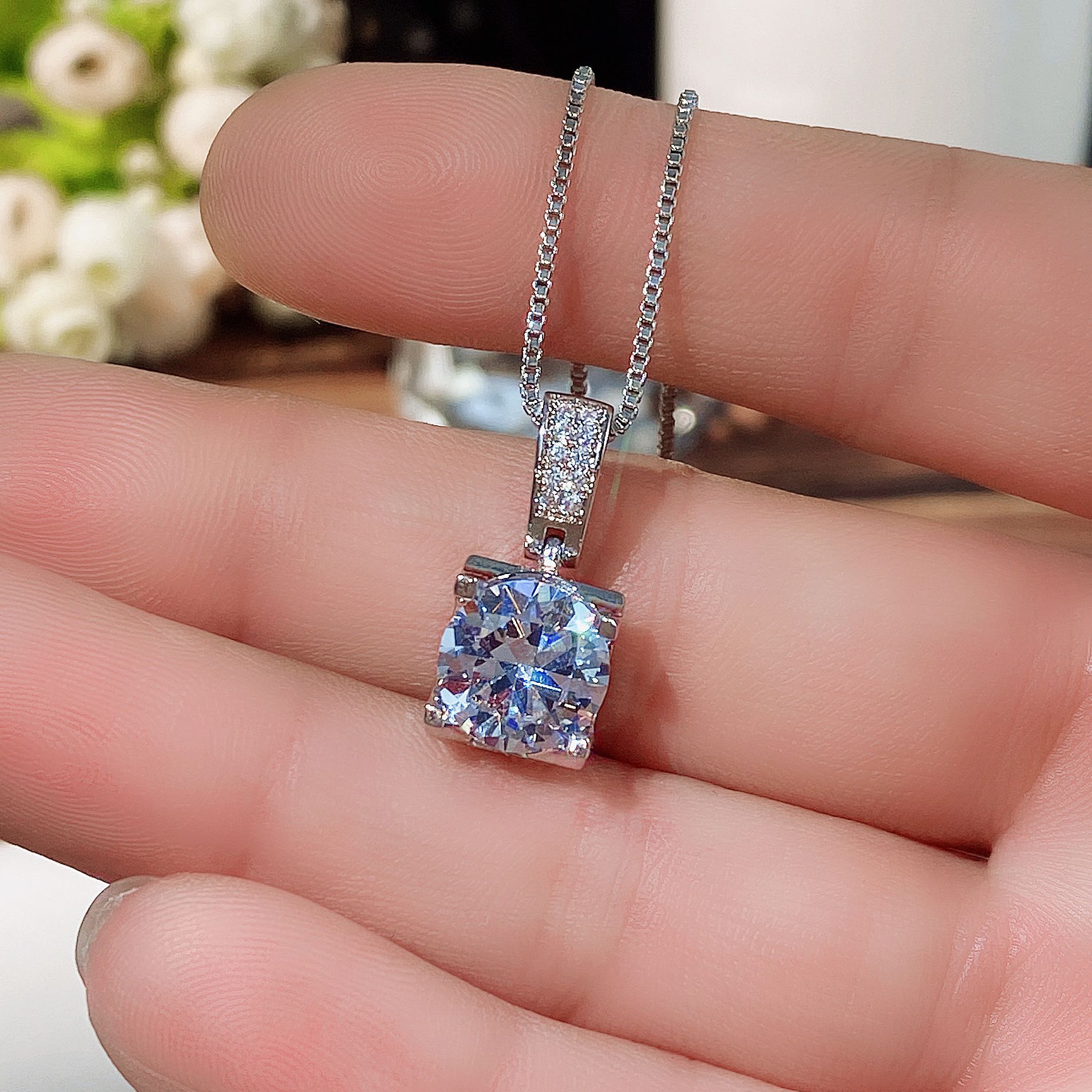 New Micro-inlaid Bull Head Single Diamond Pendant Necklace for Women Classic Versatile Simulated Diamond Clavicle Chain