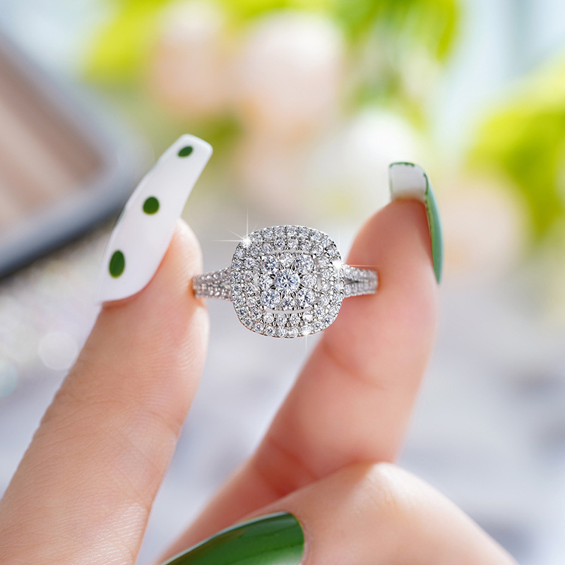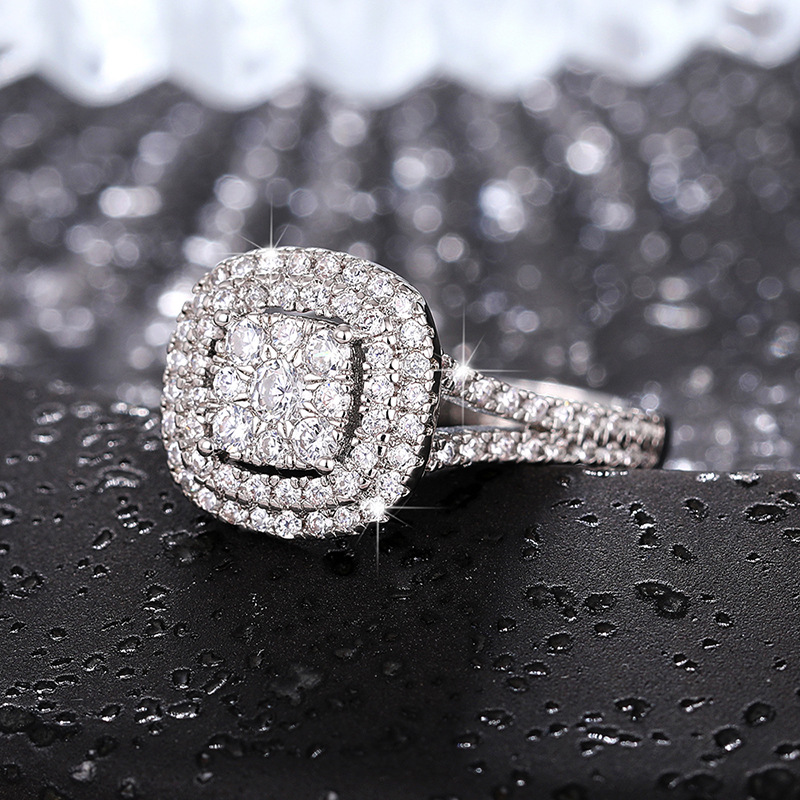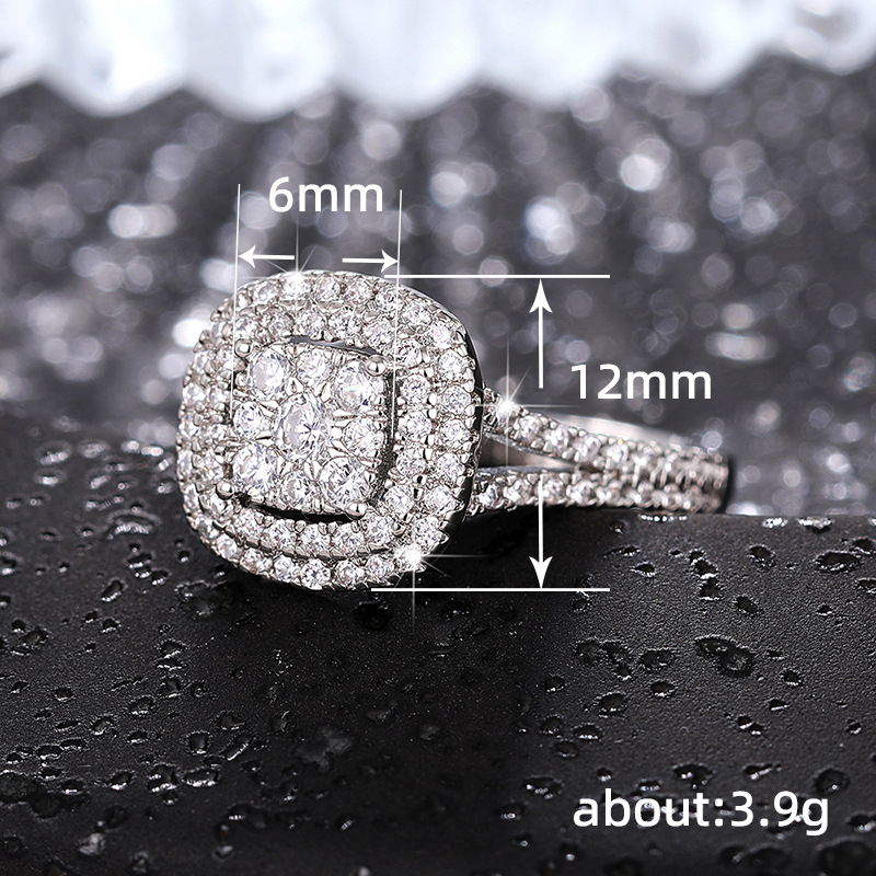 Hot selling new princess square ring European and American hot style inlaid zircon women's jewelry engagement proposal ring