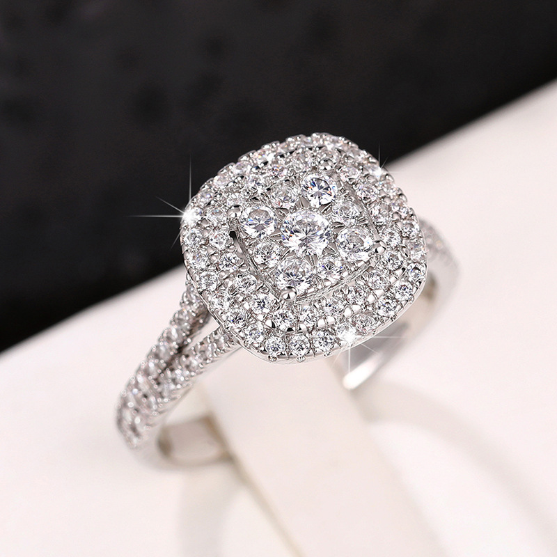 New micro-inlaid eight hearts and eight arrows square ring European and American round splicing ring engagement ring for women