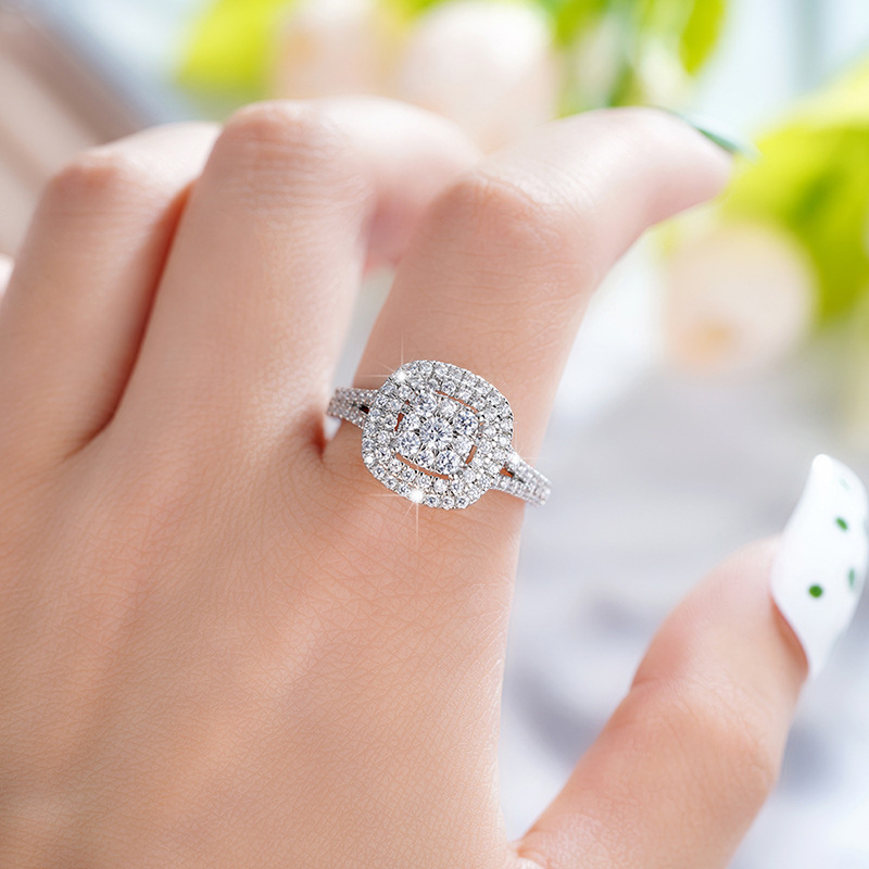 Micro-inlaid celebrity style classic all-match popular ring six-claw zircon wedding ring European and American style light luxury ring