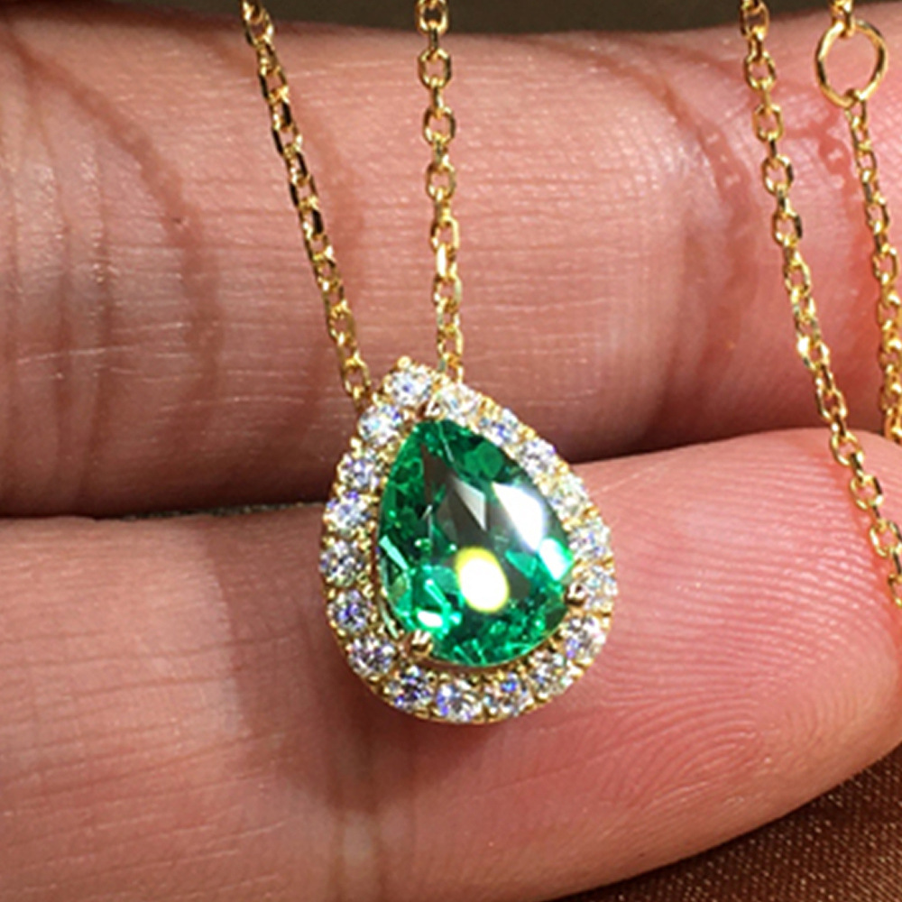 New micro-inlaid teardrop emerald zircon necklace for women from online celebrity Kuaishou live broadcast