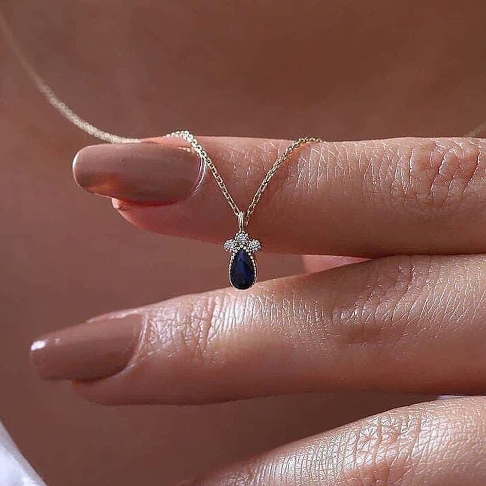 New mini necklace unique shape royal blue pendant necklace simple student sweater chain wholesale