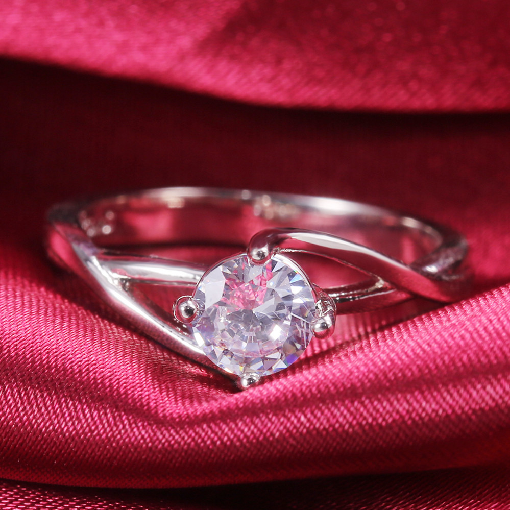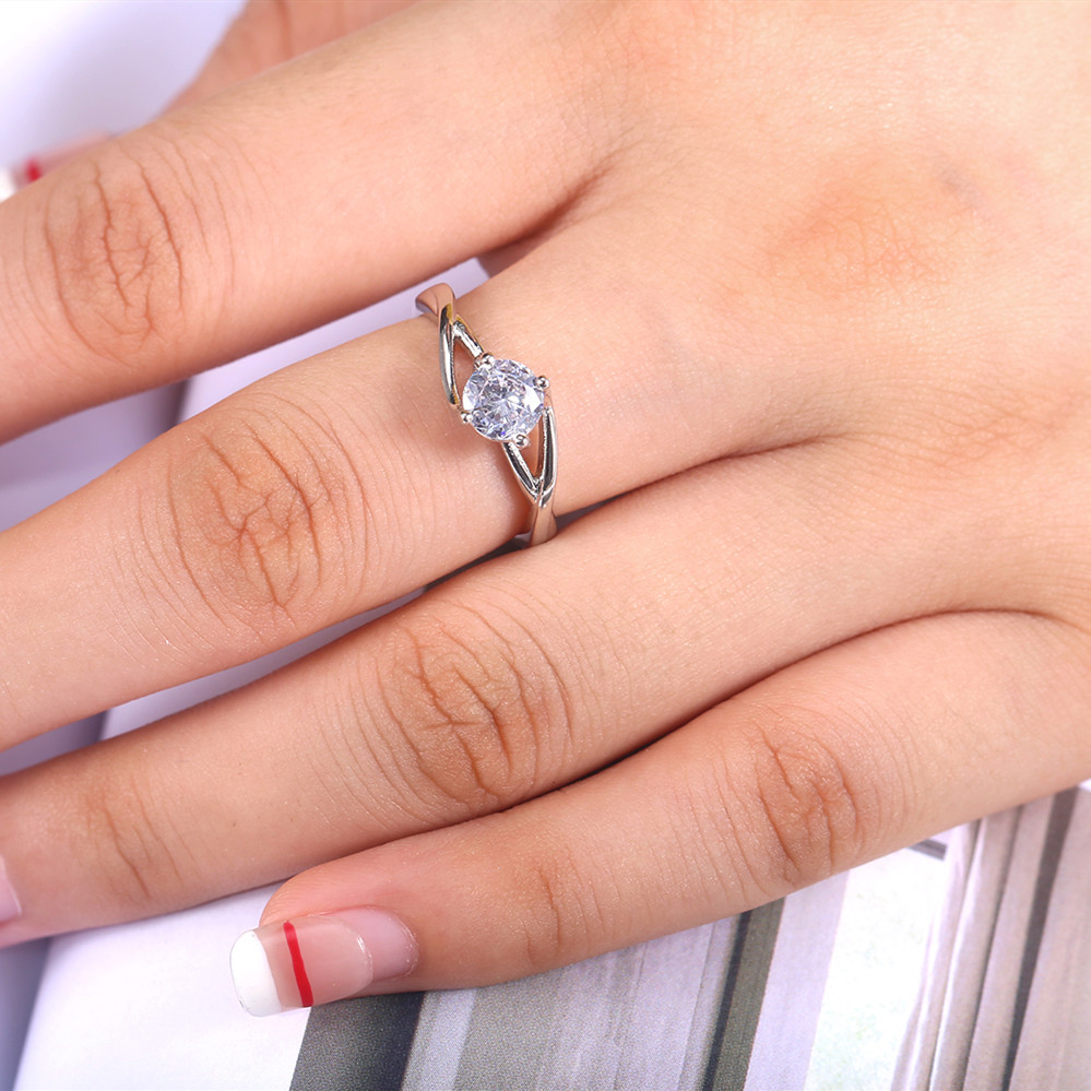 New zircon ring hollow cross four claws fashion design proposal wedding ring birthday gift ring
