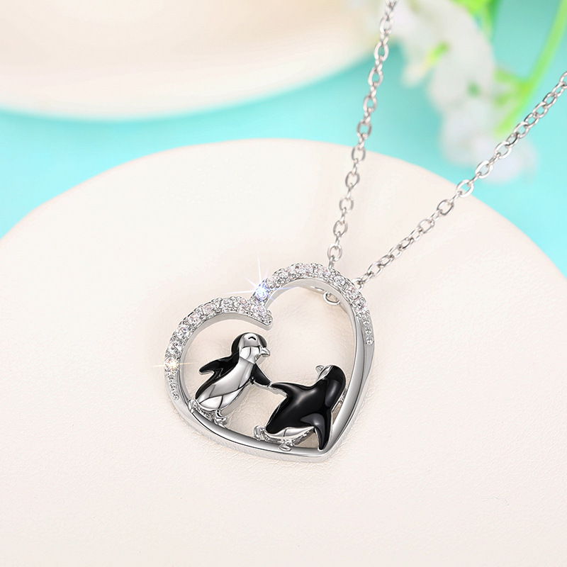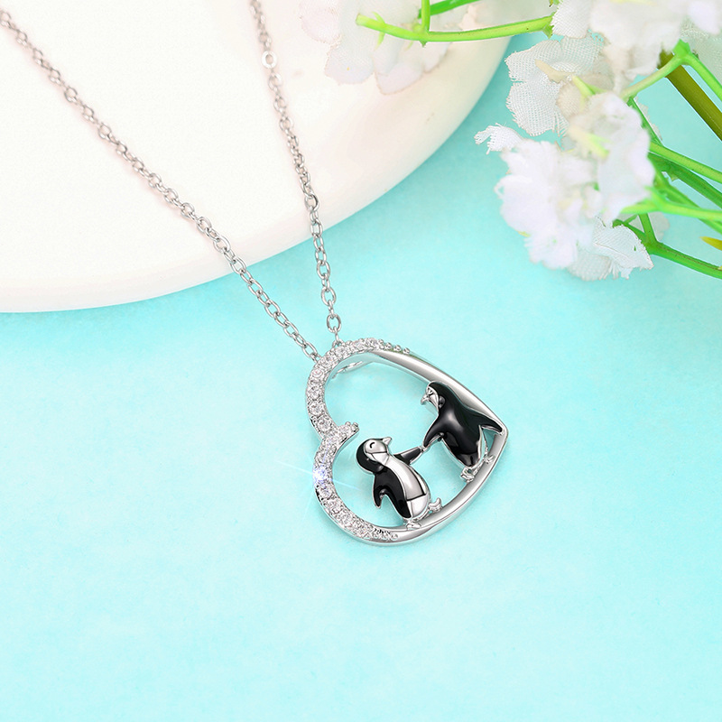 New necklace heart-shaped penguin creative hand-in-hand pendant best friend good sister necklace