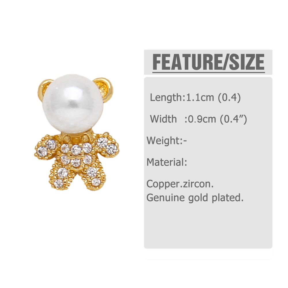 New pearl bear earrings inlaid with zircon high-end gold-plated earrings earrings jewelry erq92