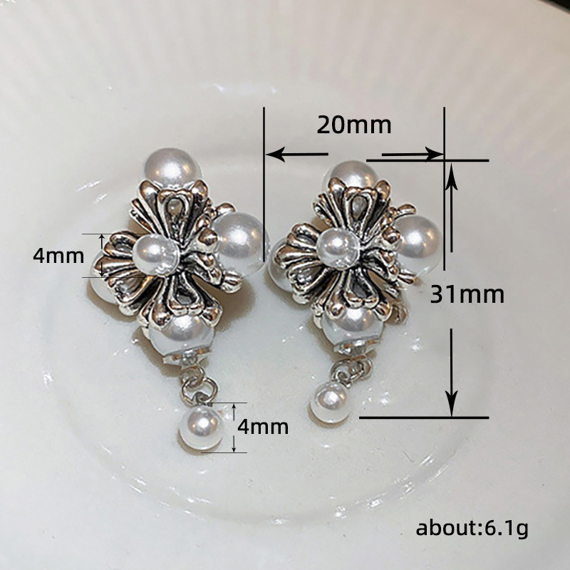 New pearl petal sweet cool style earrings French retro cold style earrings personality temperament earrings trend