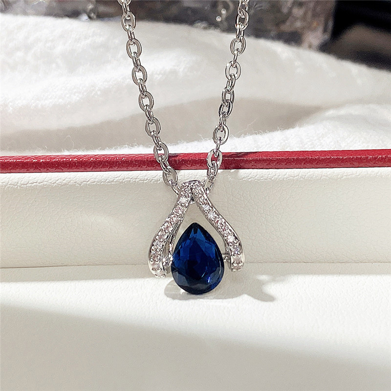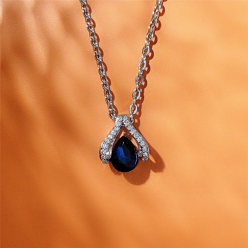 New pendant classic royal blue teardrop pear-shaped necklace elegant ladies Valentine's Day gift wholesale