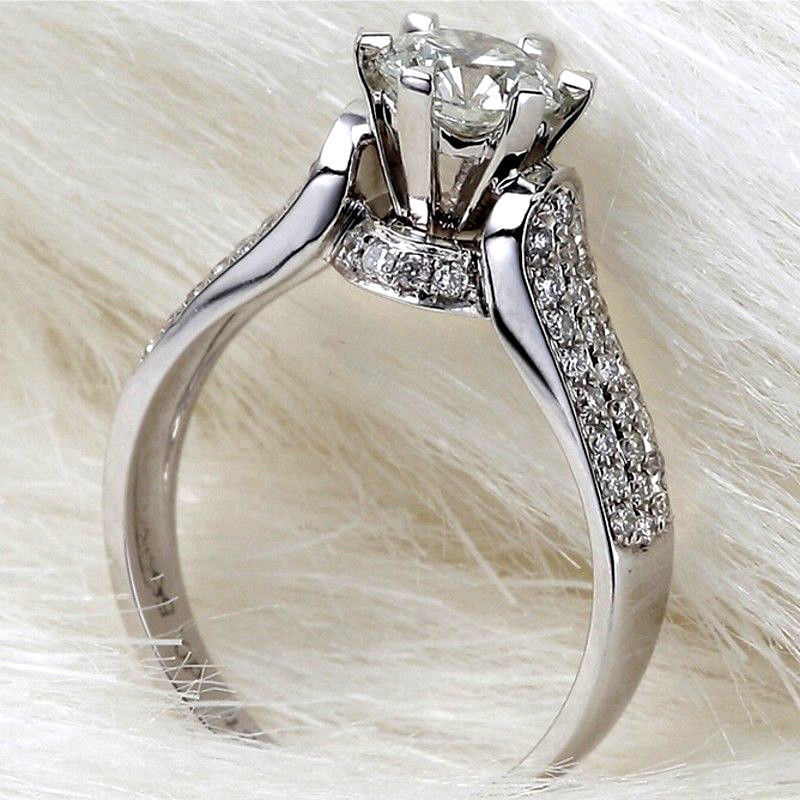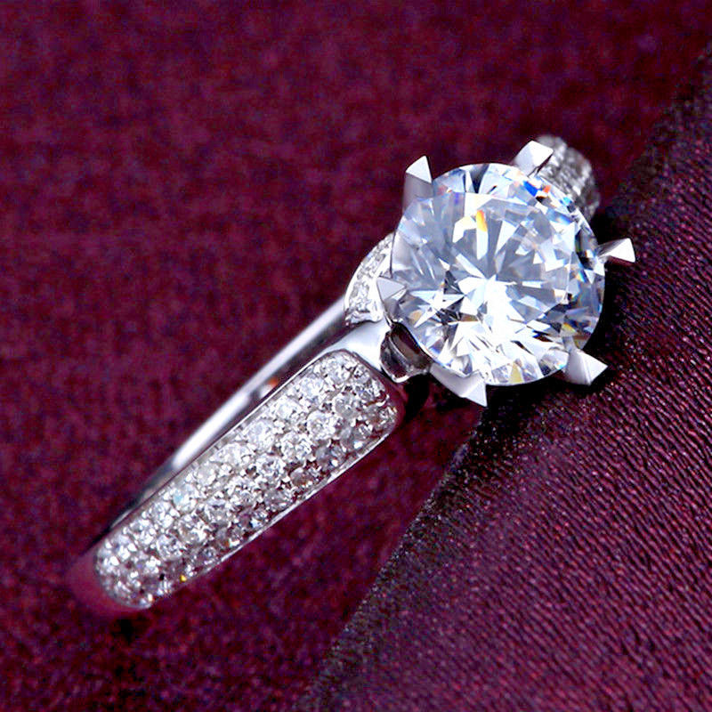 Micro-inlaid celebrity style classic all-match popular ring six-claw zircon wedding ring European and American style light luxury ring