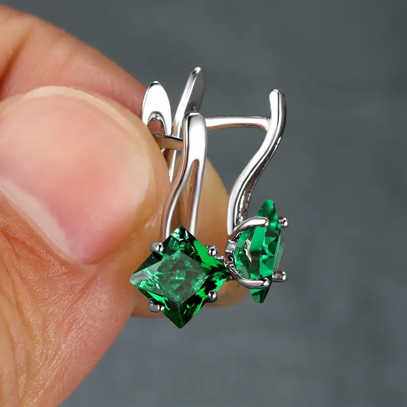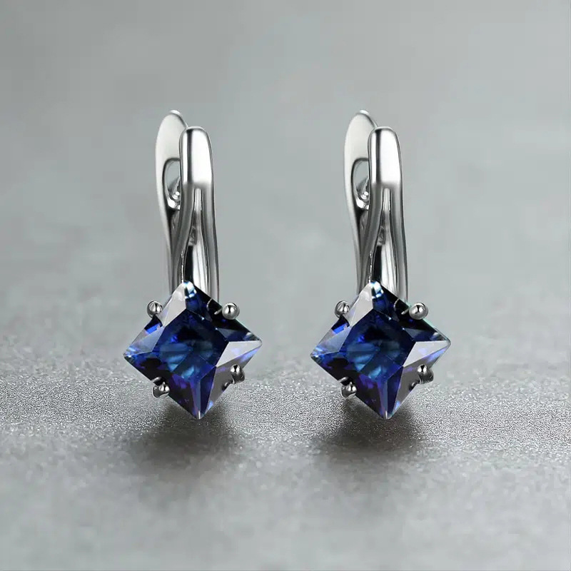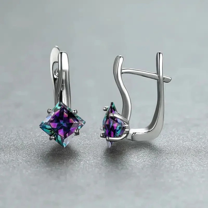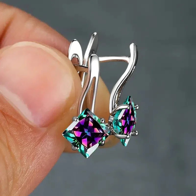 New popular earrings European and American style rainbow square stone earrings light luxury simple diamond design earrings