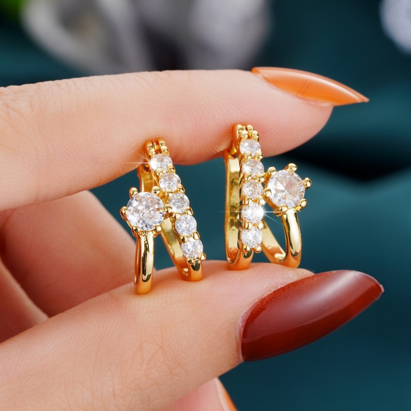 New product live broadcast fashion earrings temperament socialite Korean student earrings staggered embellishment