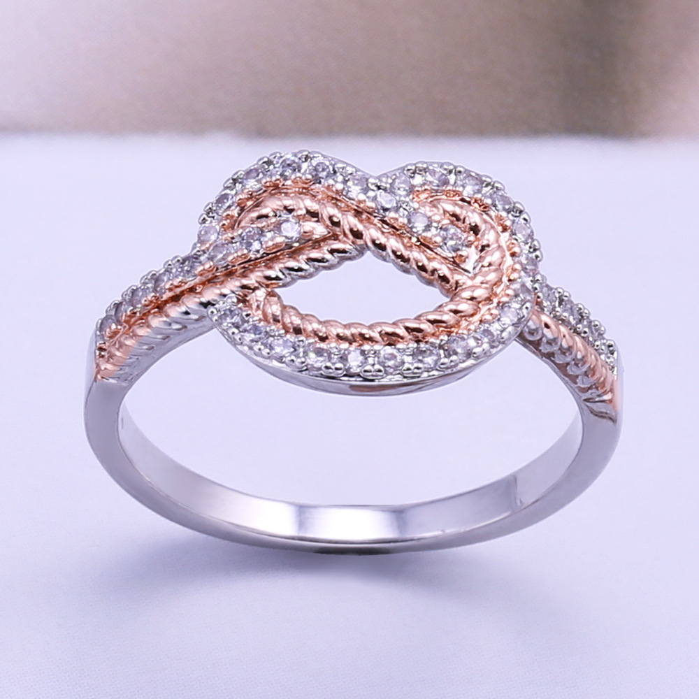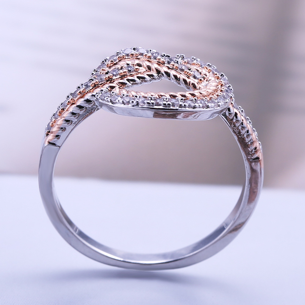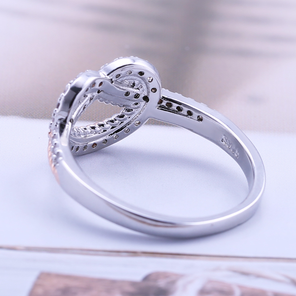 New product recommendation: Creative interwoven love heart-shaped ring electroplated two-color micro-inlaid zircon ring for women