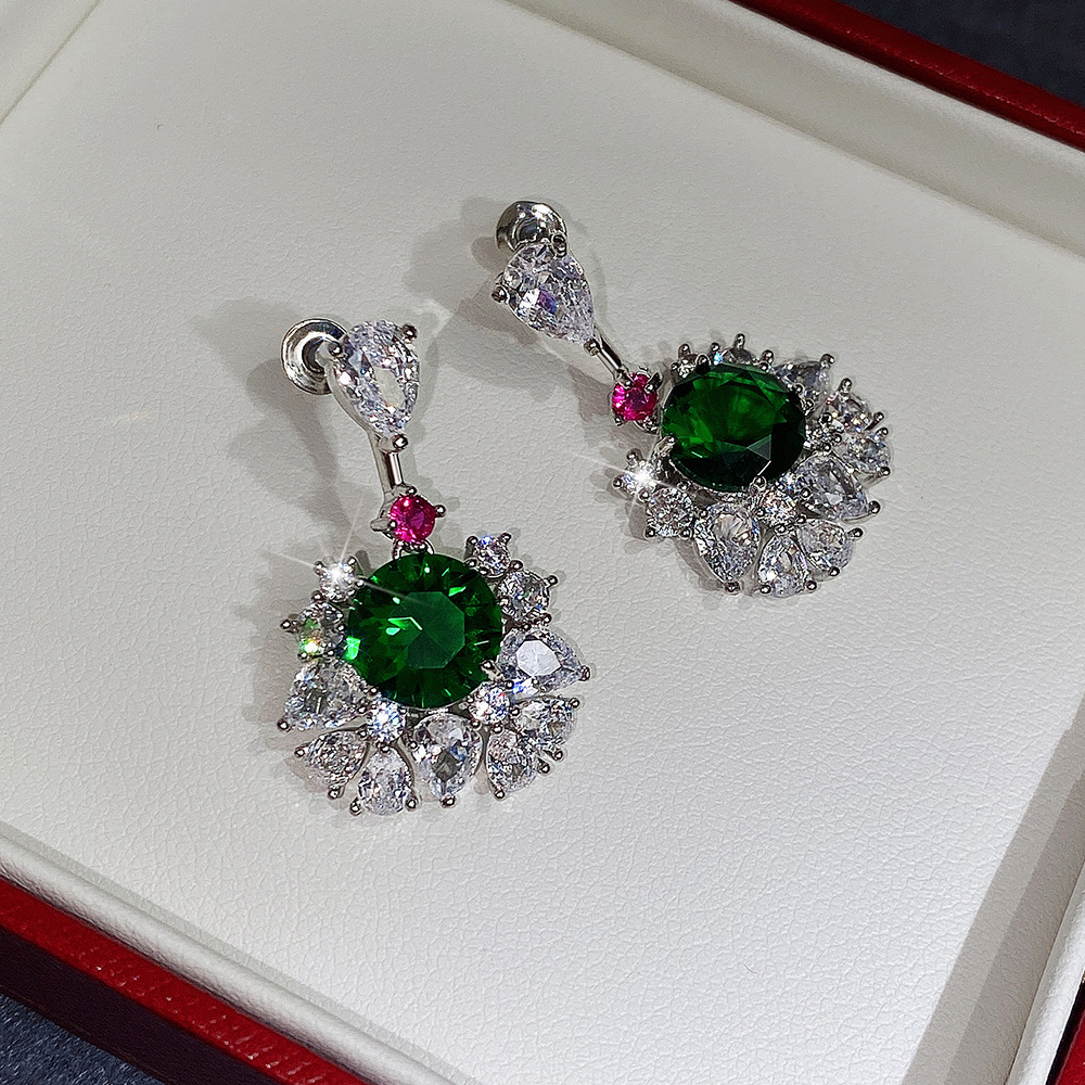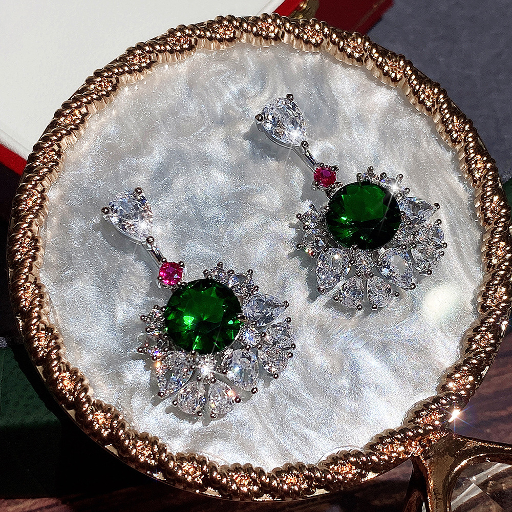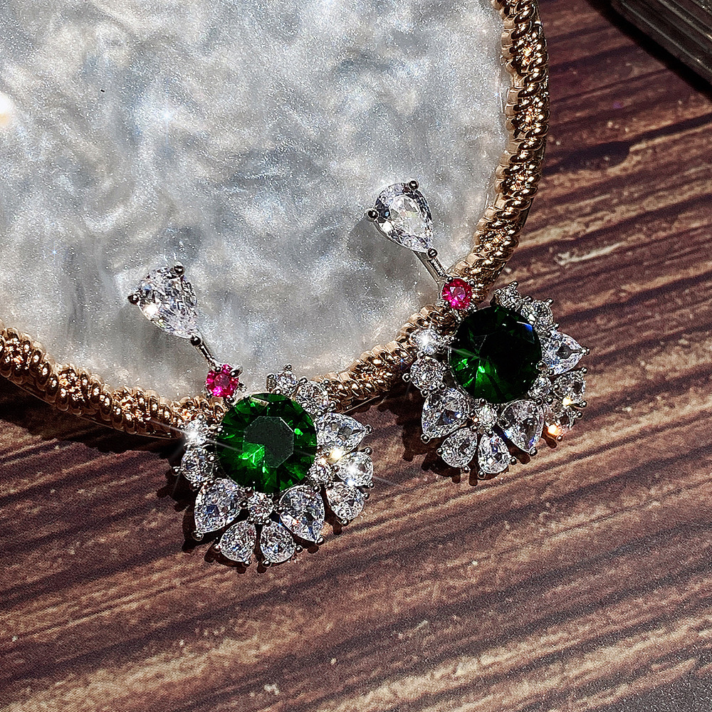 New product recommendation: high-end palace style luxury earrings for women inlaid with emerald green zircon earrings