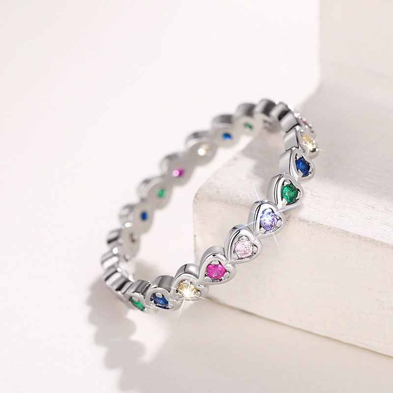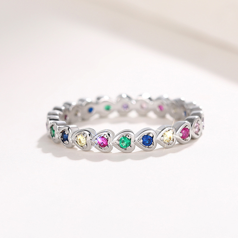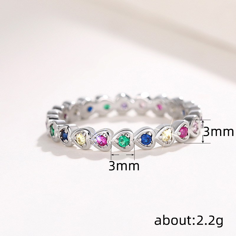 New rainbow heart ring European and American popular light luxury heart-shaped rings colorful stacking female rings