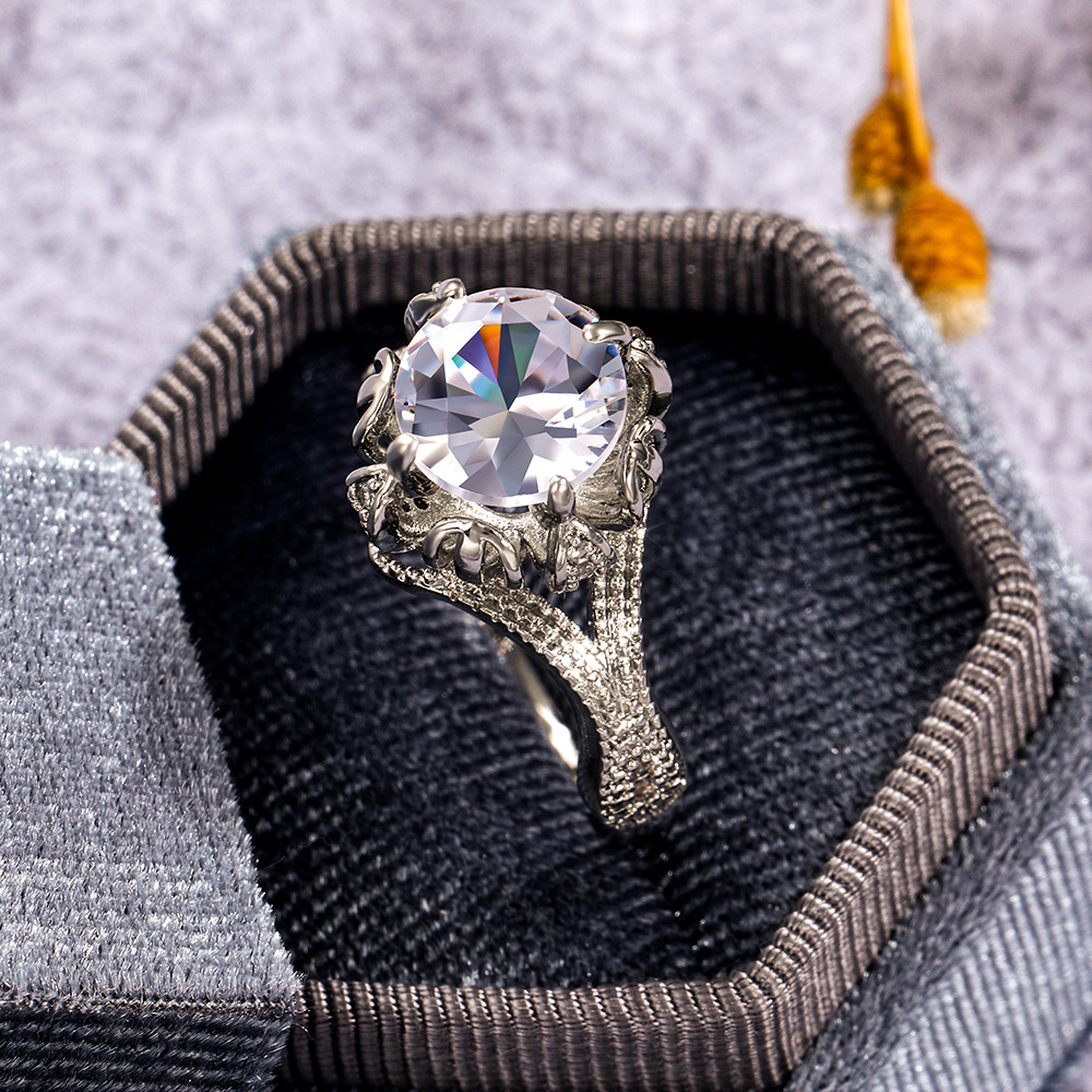 New zircon ring hollow cross four claws fashion design proposal wedding ring birthday gift ring