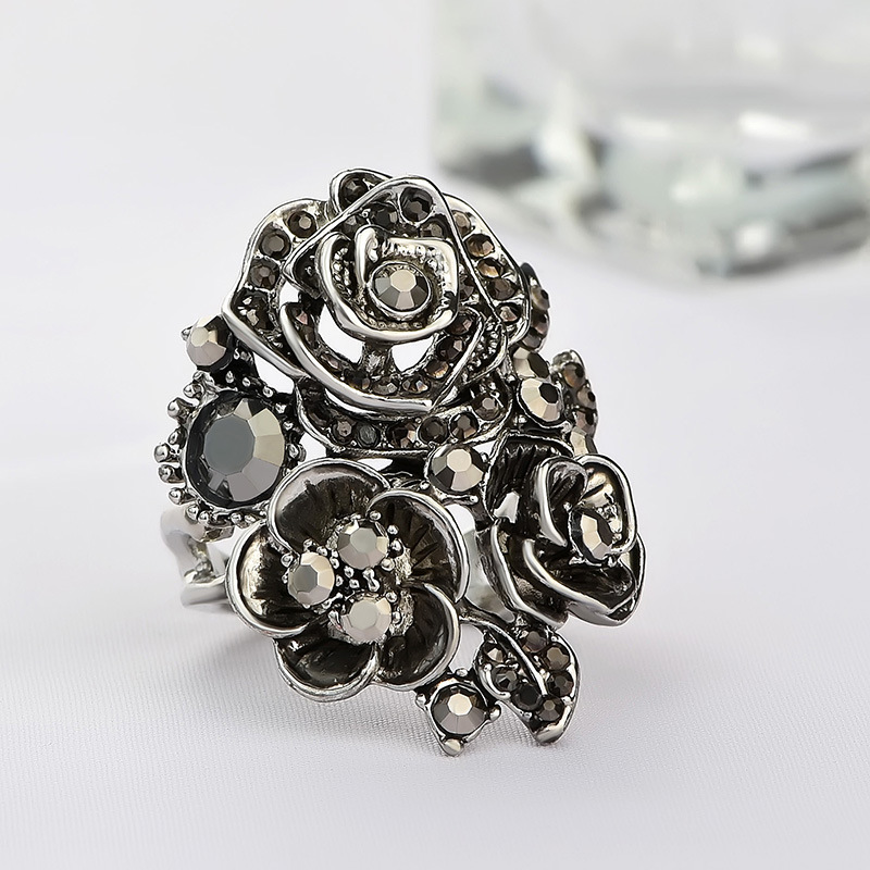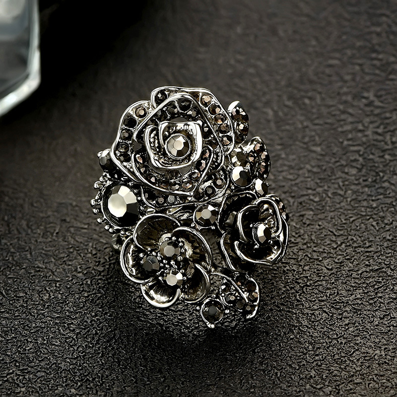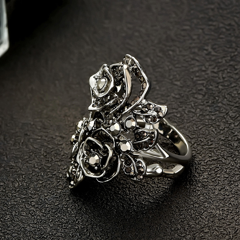 New retro flower ring hollow relief rose ring anniversary celebration ring ring accessories