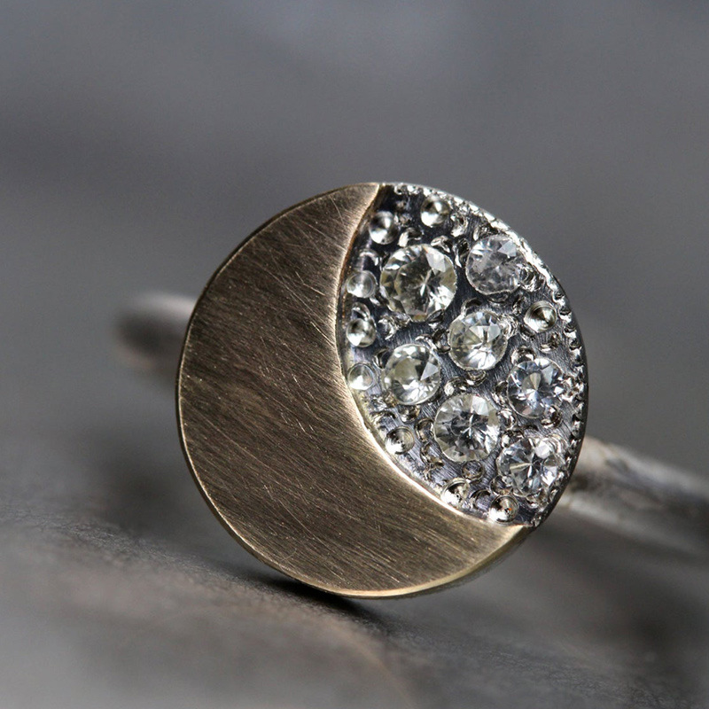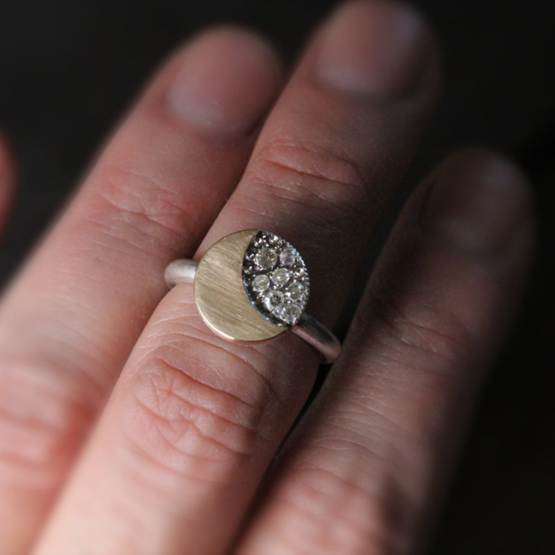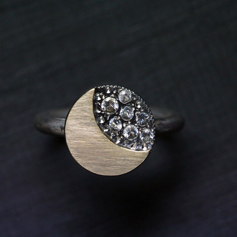 New retro round moon diamond two-tone ring hip-hop trend men and women's ring hot sale