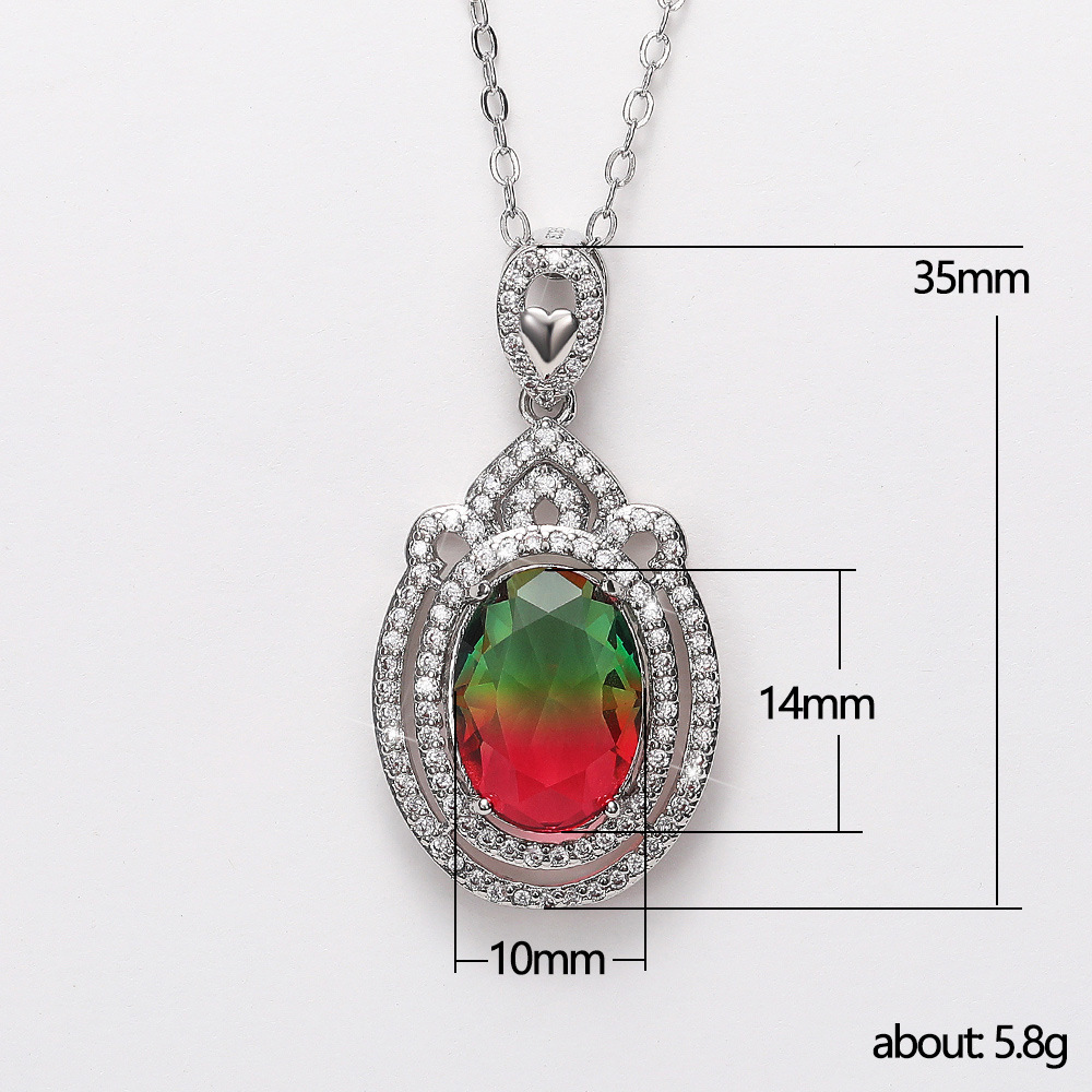 New retro super flash oval zircon pendant female European and American copper inlaid colored zircon necklace