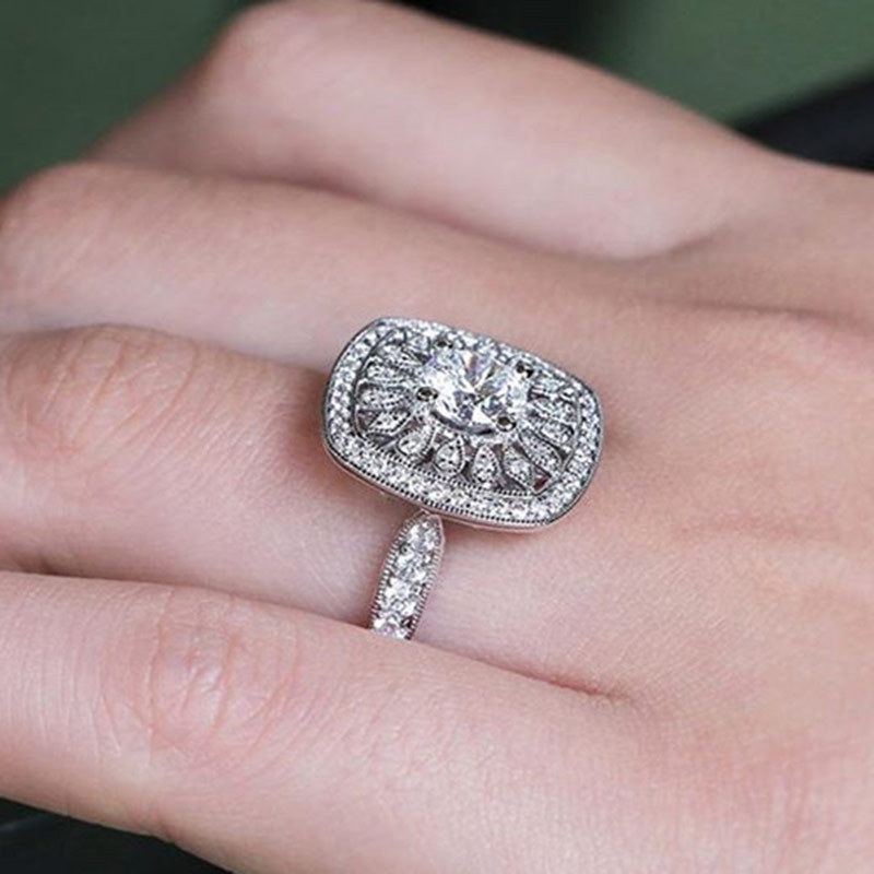 New zircon ring hollow cross four claws fashion design proposal wedding ring birthday gift ring