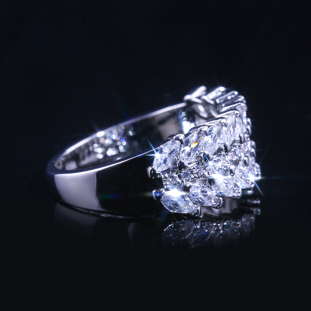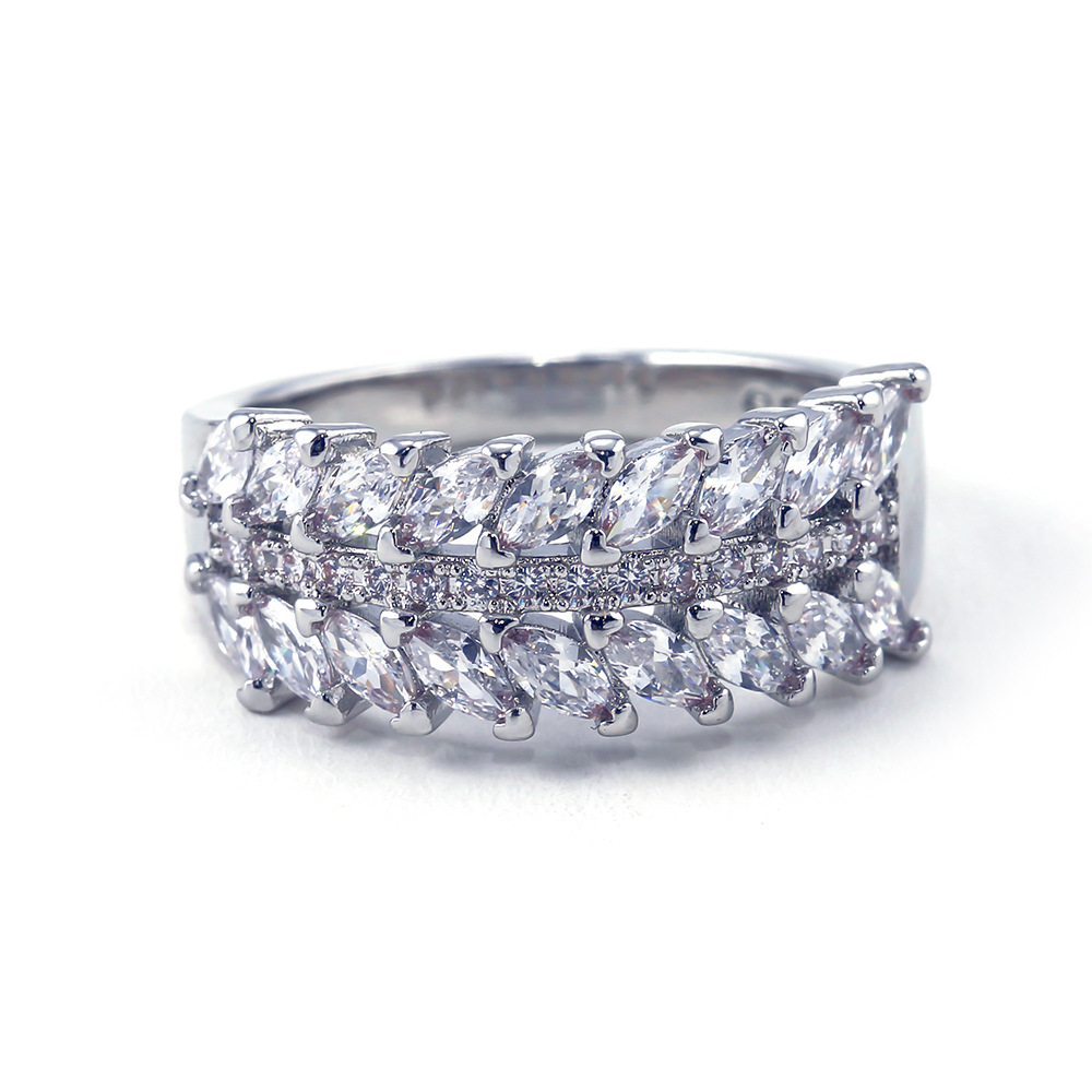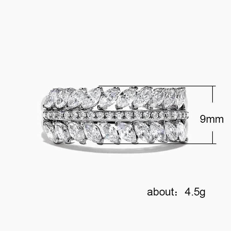 New ring double row zircon full diamond ring copper plated silver luxury women's ring jewelry