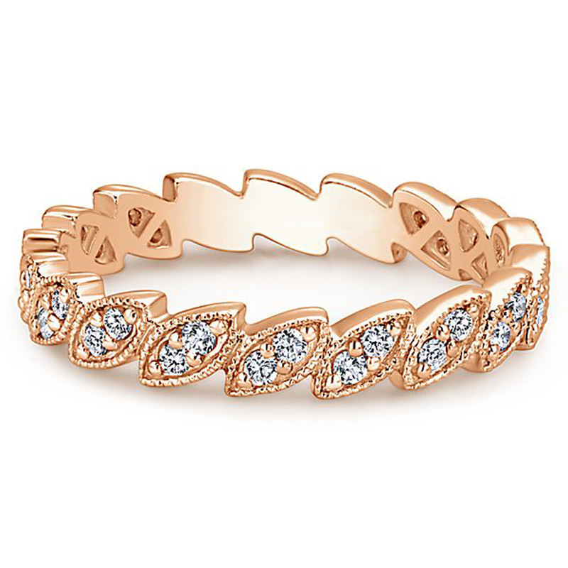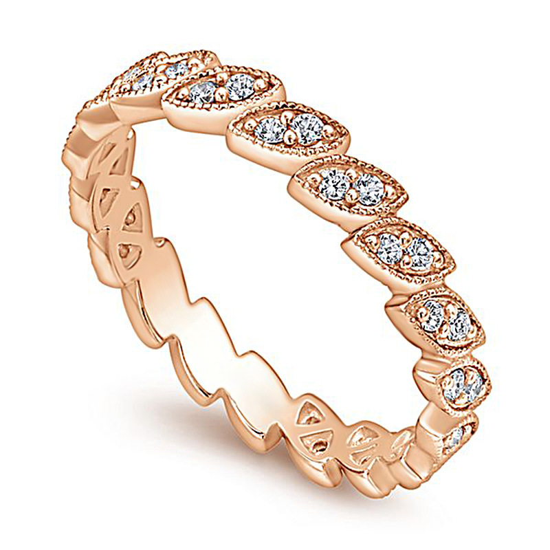 New ring European and American creative leaf-shaped zircon ring female party travel tail ring