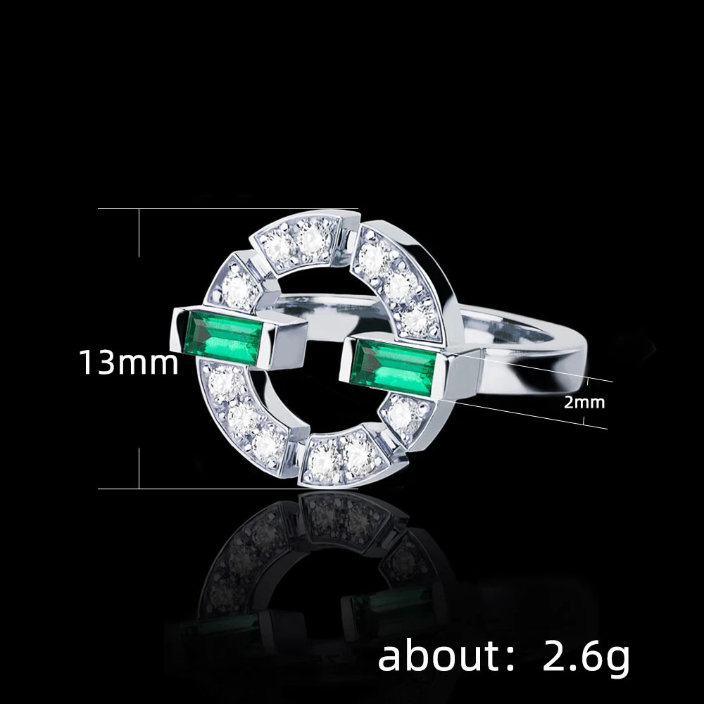 New ring exquisite fashion inlaid green zircon ladies ring copper plated white gold ring factory direct sales