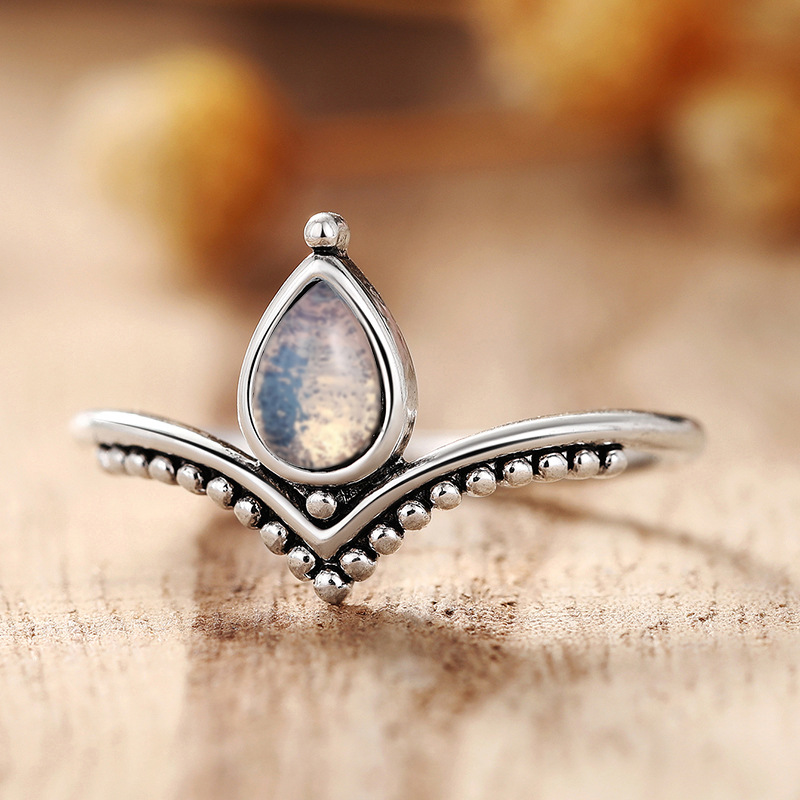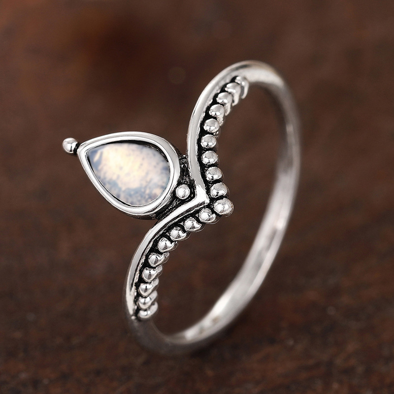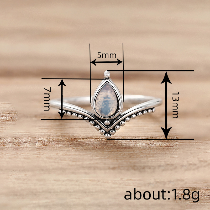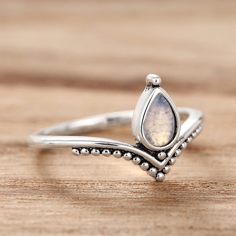 New ring for women, water drop, niche, simple design, jewelry imitating moonstone, V-shaped style
