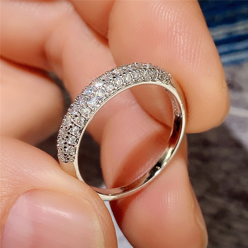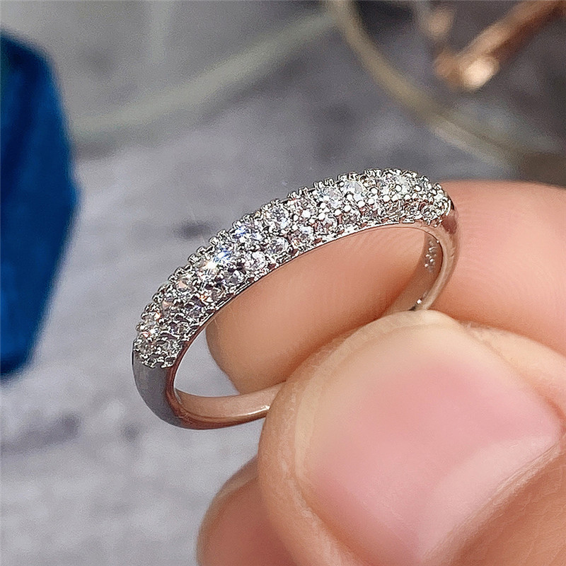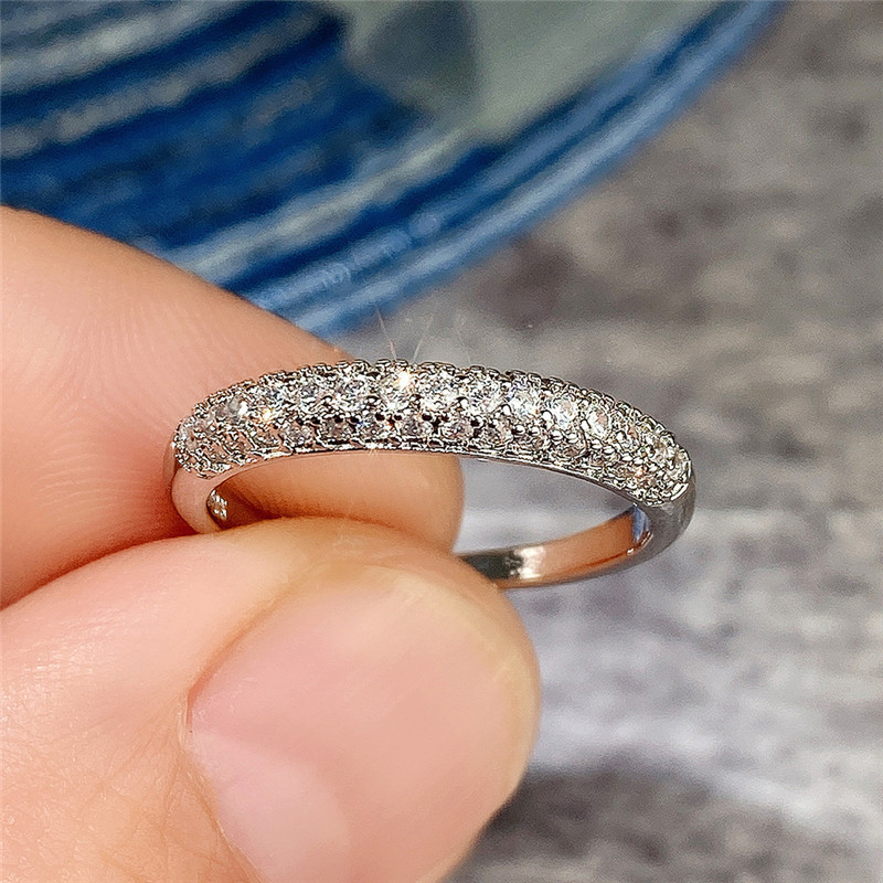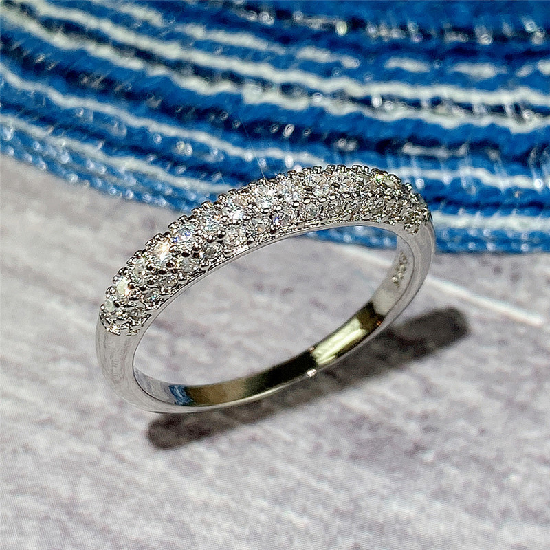 New ring full of diamonds three rows of zircon couple ring design sense stacking ring trend