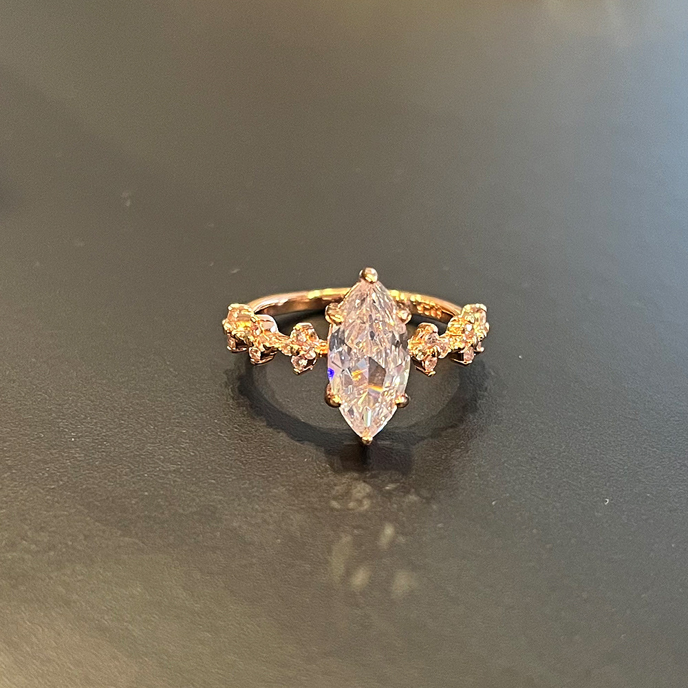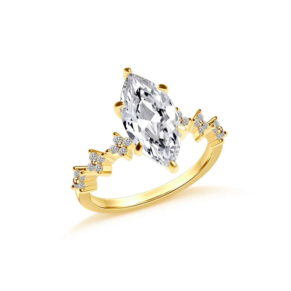 New ring inlaid with marquise zircon gold jewelry European and American popular fashion women's wedding ring