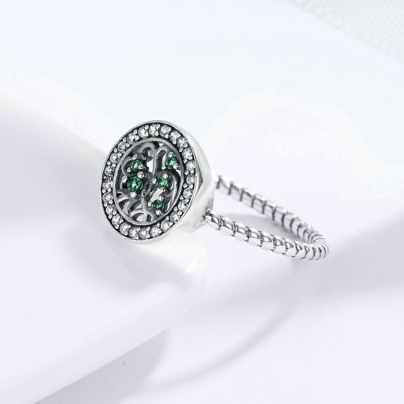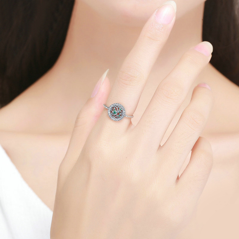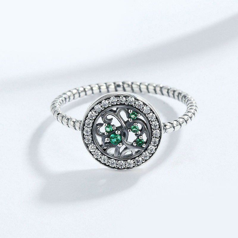 New ring simple tree of life plant ring women's copper-plated silver micro-inlaid zircon jewelry accessories