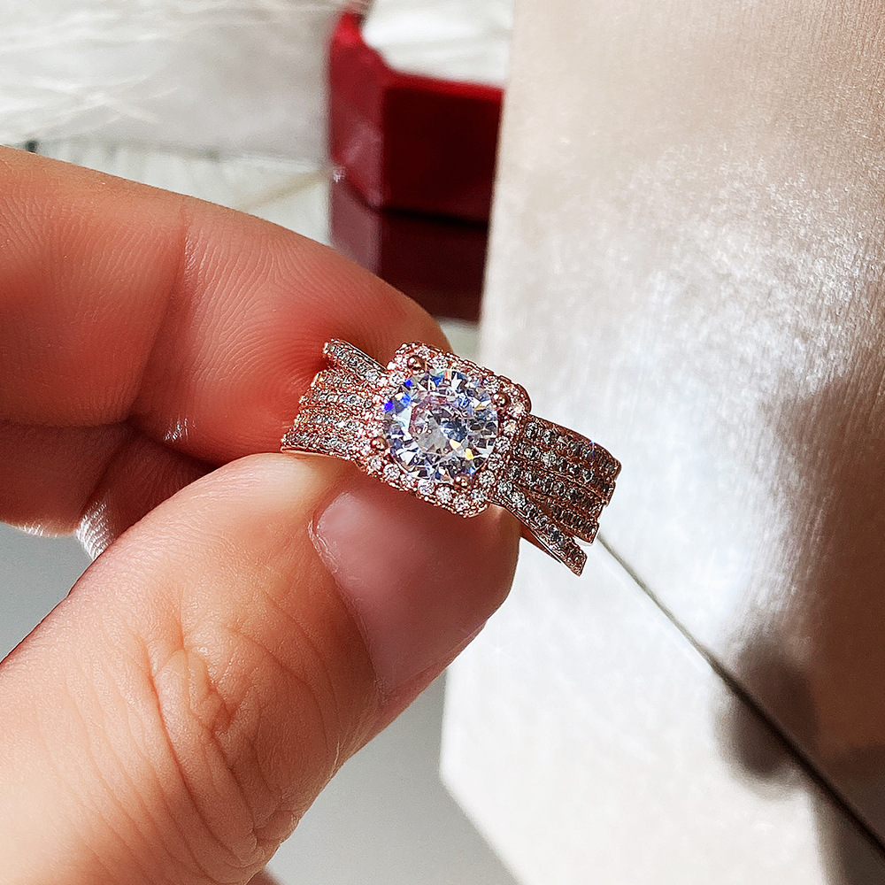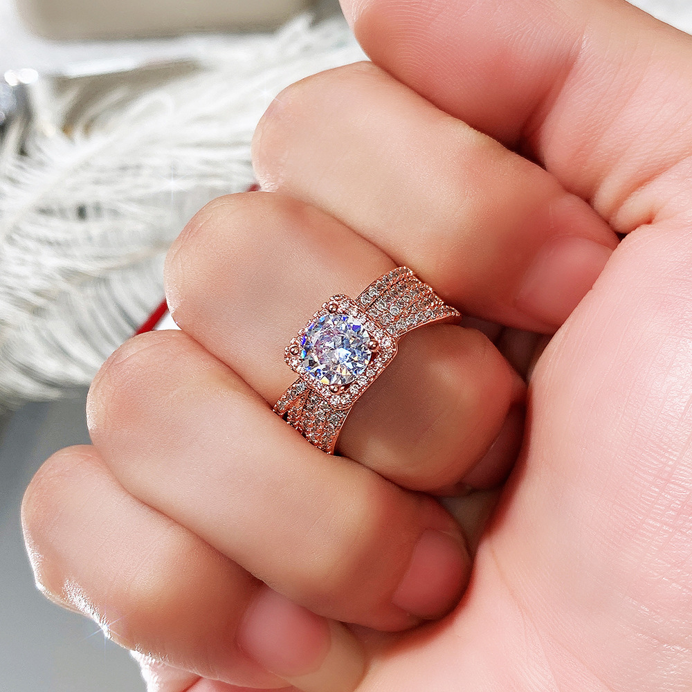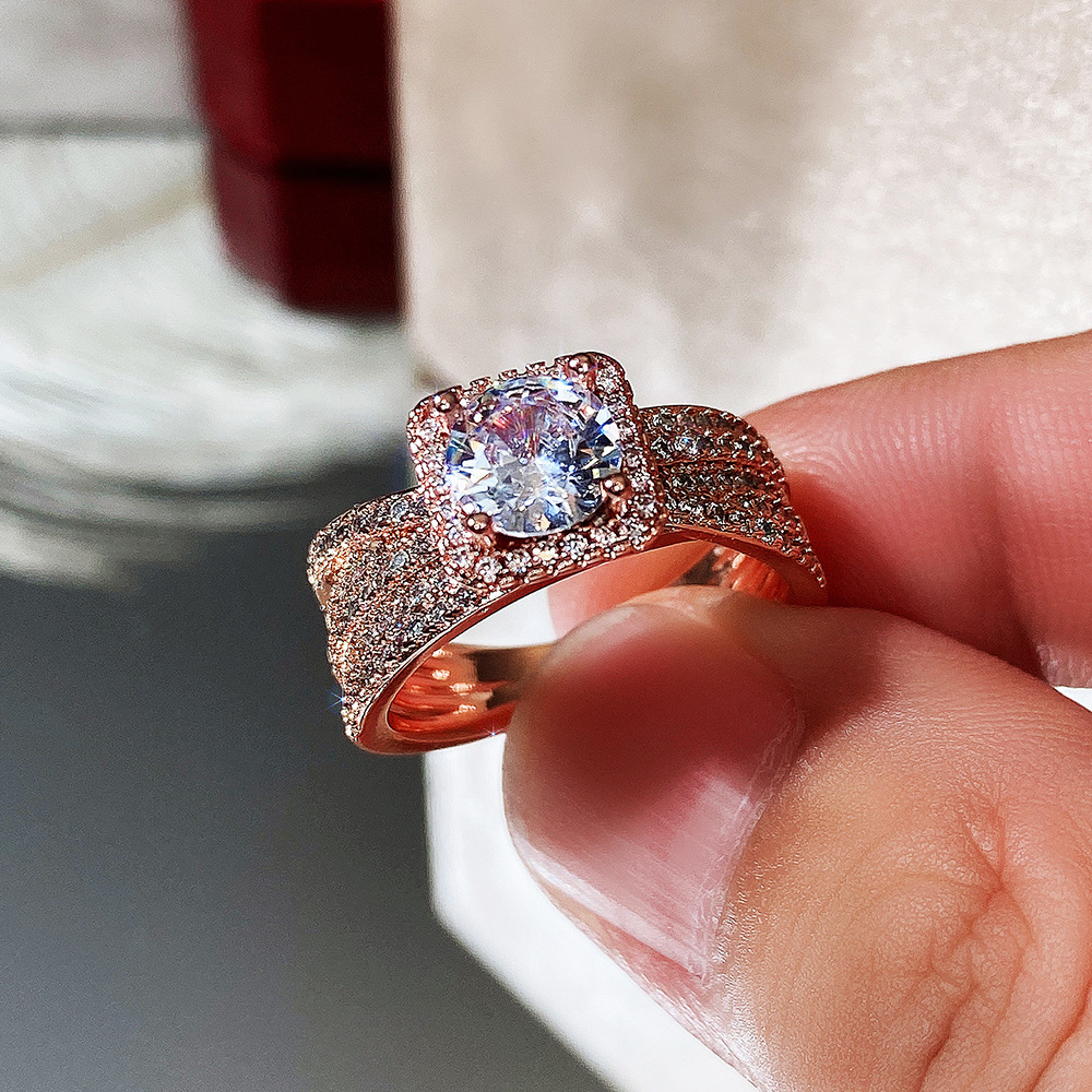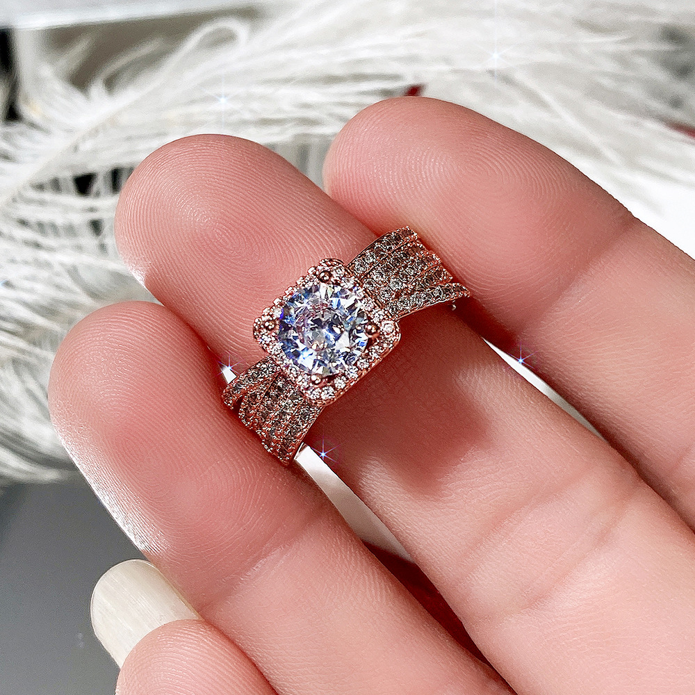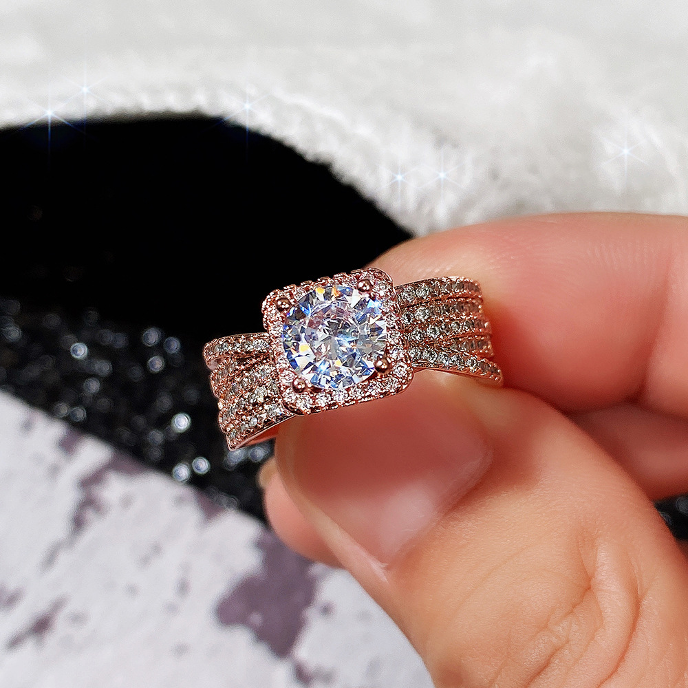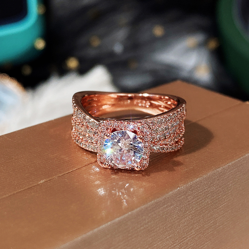 Micro-inlaid celebrity style classic all-match popular ring six-claw zircon wedding ring European and American style light luxury ring
