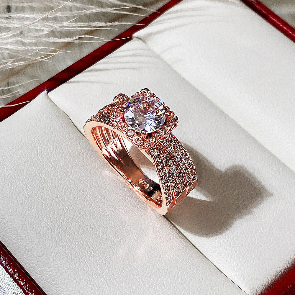 New rose gold jewelry luxury full diamond wide ring sparkles business party wear ring