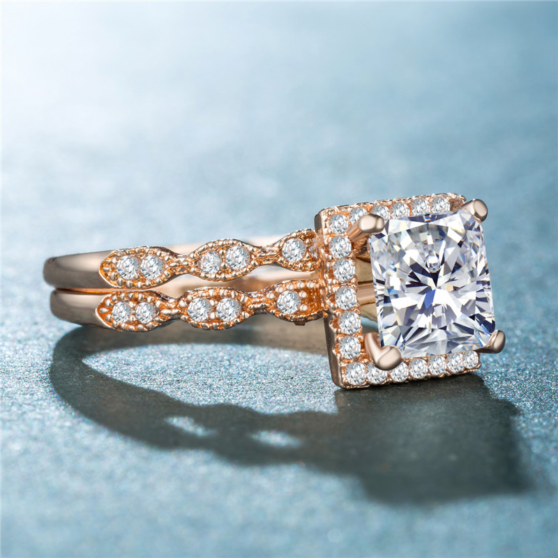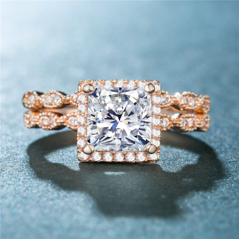 New Rose Gold Square Diamond Zircon Couple Rings Women's Wedding Jewelry Birthday Gift Jewelry Wholesale