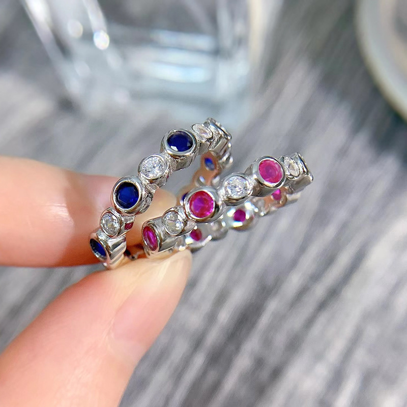 New round ring geometric shape wrong color micro inlaid index finger ring simple and versatile temperament ring