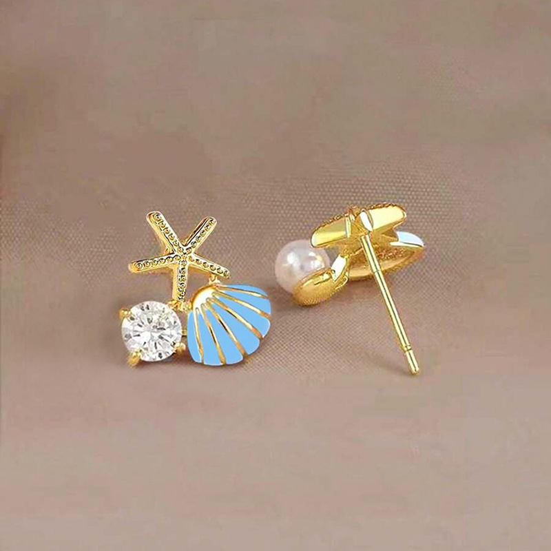 New shell starfish earrings for women, pearl drop oil, small fresh jewelry, holiday style, exquisite style