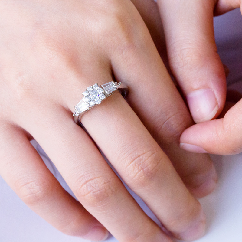 Hot selling new princess square ring European and American hot style inlaid zircon women's jewelry engagement proposal ring