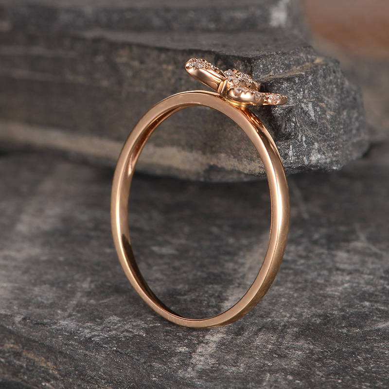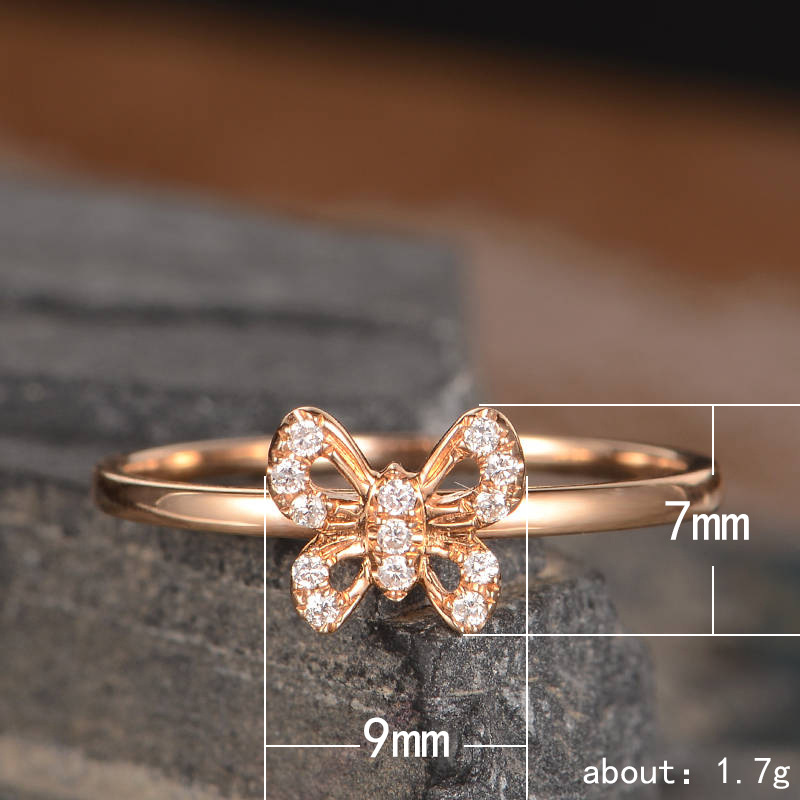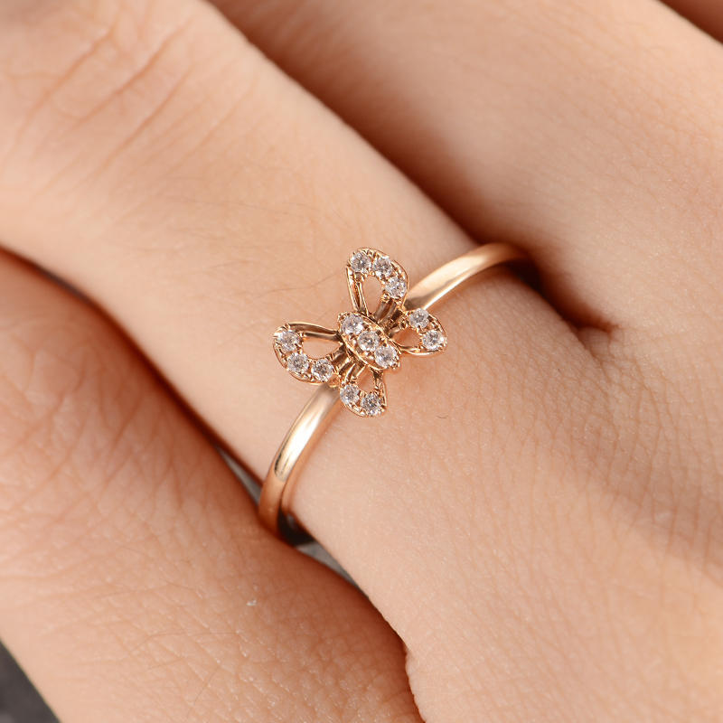 New simple butterfly micro-inlaid zircon women's ring exquisite copper plated rose gold jewelry