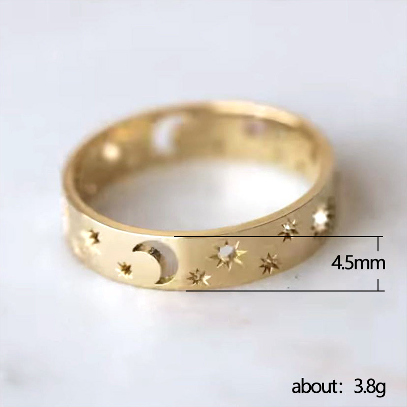 New simple star and moon hollow ring European and American style unisex ring copper jewelry hot sale